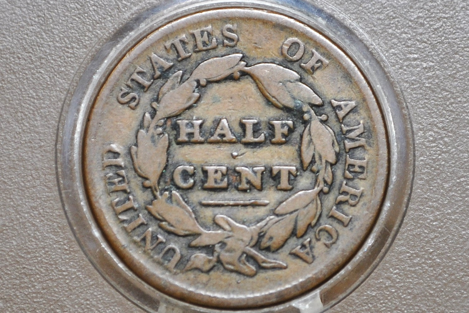 US Half Cents (or Half Pennies) were the smallest denomination of US coins. Due to the short period of time that they were minted, and a smaller size population in need of coinage, all Half Cents are scarce today. With variations in production, design type, and mintage numbers, Half Cents are a coin type in which there is much to explore and learn. For a collector, high grades can fetch very high prices and having a quality coin of any half cent year is a great goal.