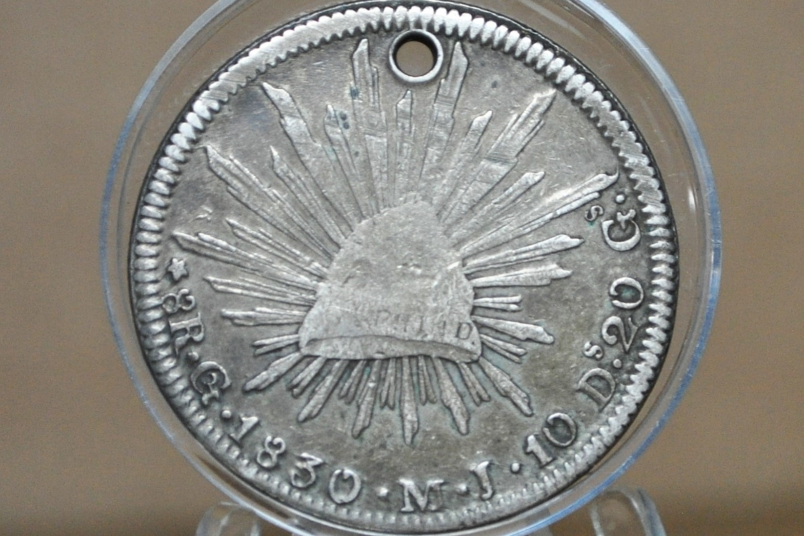 1830 Spanish 8 Reales, as pictured. Mexico. VF/XF Detail, Holed. Reduced Price!