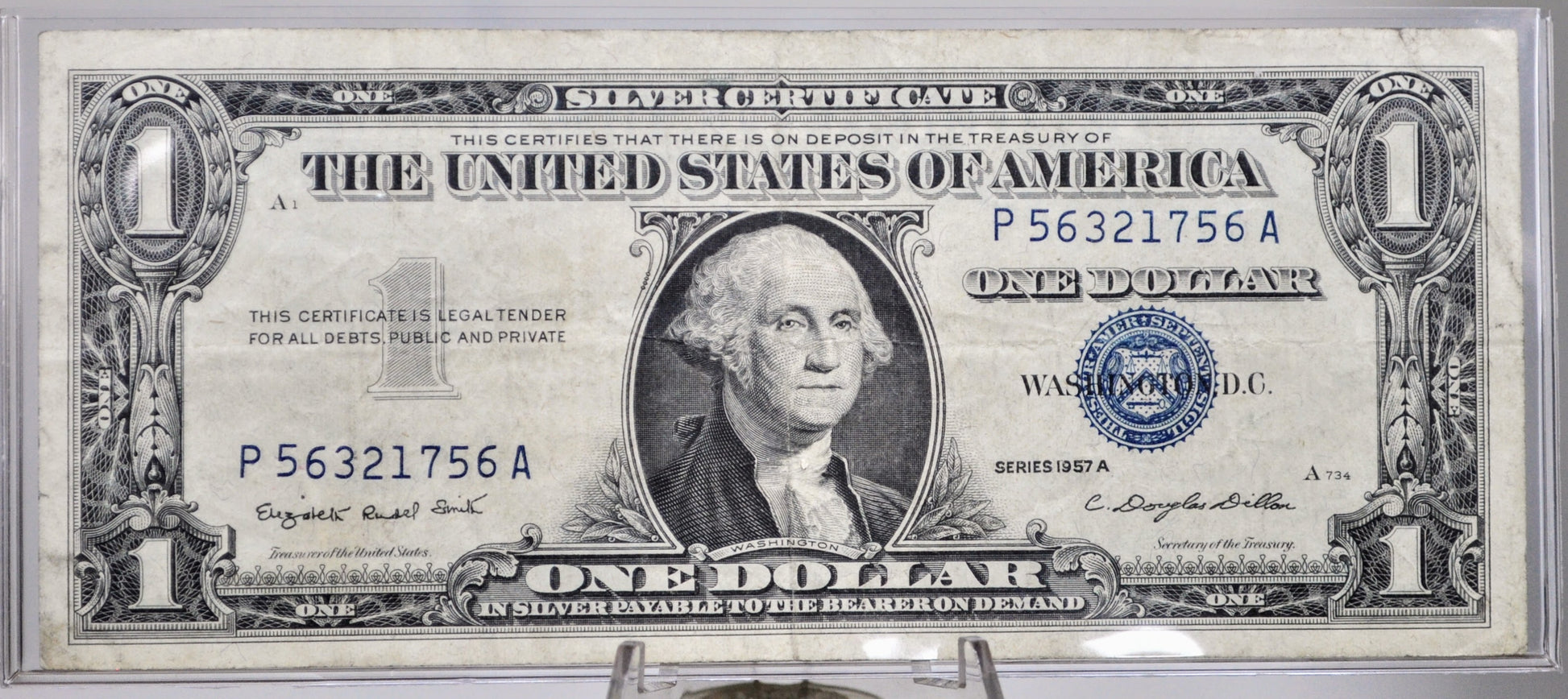 This listing is for the photographed 1957-A One Dollar Silver Certificate Fancy Serial Number Note. Choice Very Fine (VF+) grade/condition, as pictured. This note has an interesting bookend pattern serial number, having the same starting and ending two digits, 56321756, making it a highly sought after find! Signed by Smith and Dillon. Great find, perfect addition to any collection! Fr.1620 (Friedburg Number 1620).