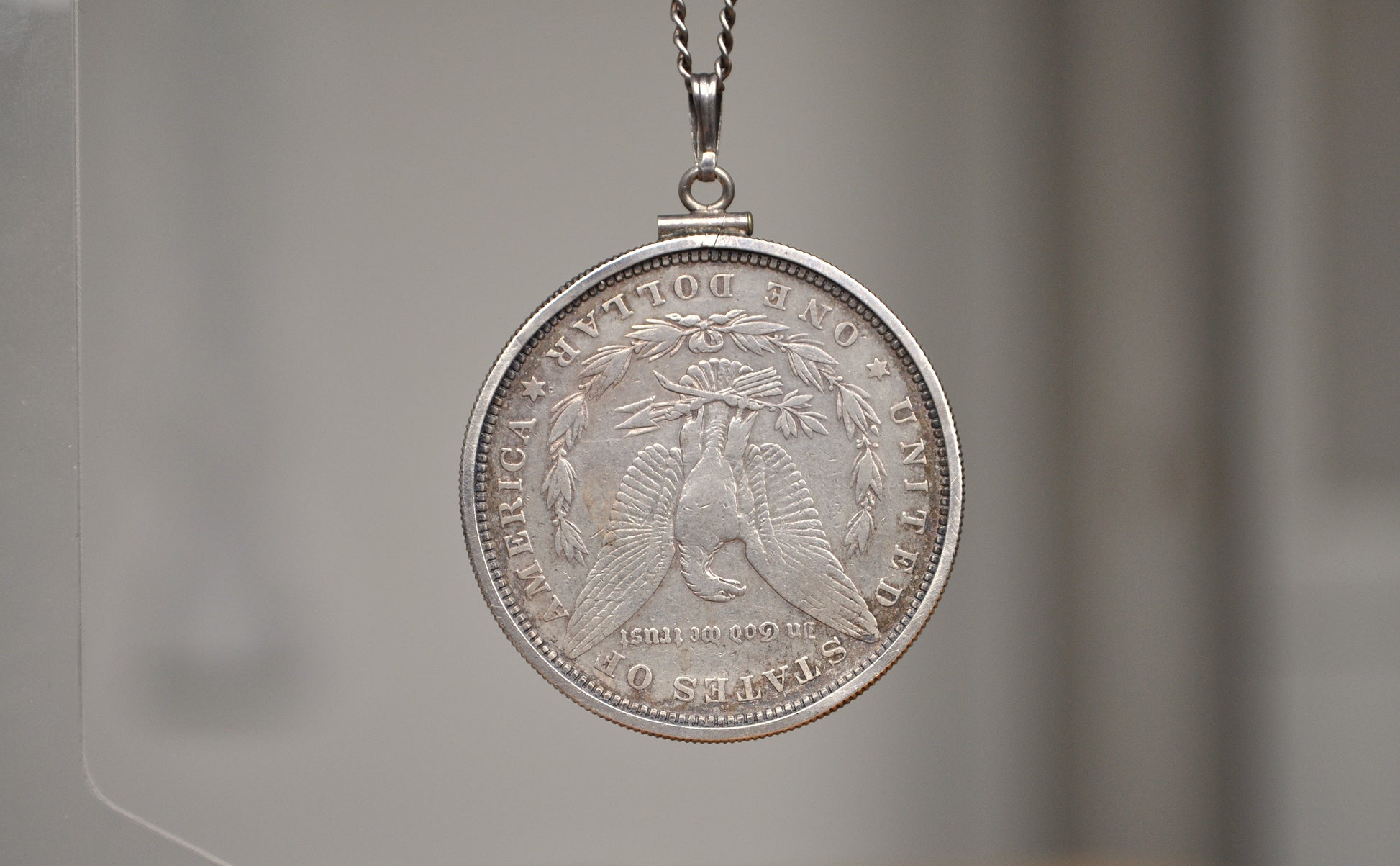This is for the photographed Rare 1880 Morgan Silver Dollar Bezel Necklace. Rare and cool coin modified to include a bezel and chain necklace.