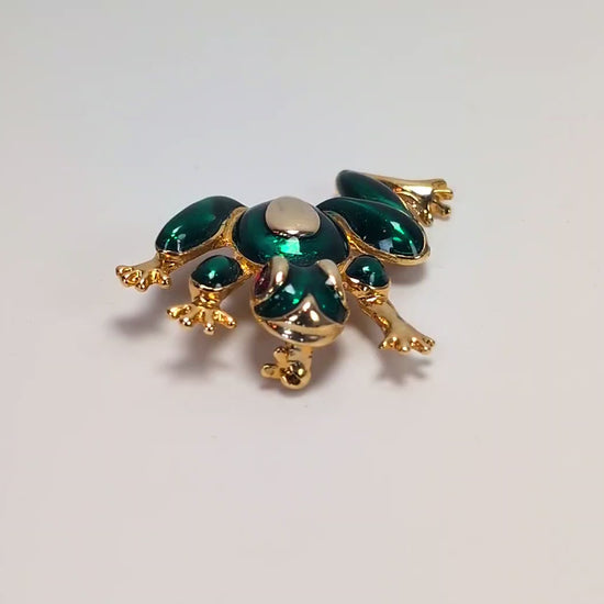 This listing is for the pictured Vintage Gold Tone Enamel Tree Frog Brooch 1 1/2 Inch Pin