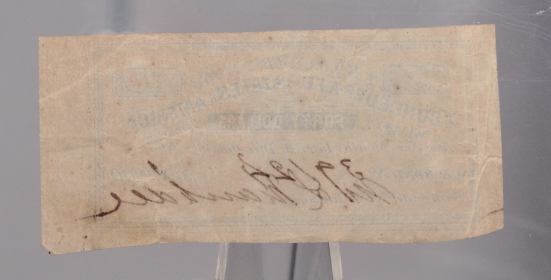 Immediately following the Confederate States secession from the Union, they needed to independently establish their own revenue and monetary production. They began to issue these interest bonds and printing paper currency in order to boost their economy and revenue for their war efforts. Supporters of the Confederate States could buy these interest bonds to donate funds to the government. Bonds were issued with a number of semi-annual coupons, such as these, that the holder could cash in by the coupon's expiration date. The first of the interest bonds were issued by the Confederacy in the same month as their establishment, in February of 1861. The revenue gained from these bonds accounted for 32% of the total Confederate revenue during its existence. Since the Confederacy advocated for states' rights and the Union made it difficult for foreign trade to occur between the Confederacy and other countries, the Confederate States did not advocate for the taxation of their citizens as a form of revenue. Overseas Confederate bond holders would purchase these interest bonds in hopes that the Union would pay off these loans after their victory in the Civil War. But, after the Union's victory they enacted the 14th amendment, which along with other aspects, effectively forbade the recognition of Confederate debt, with all such debt, including these loan coupons, being considered void. These loan bond coupons provide an incredibly interesting look into the funding of the Confederacy during the Civil War!