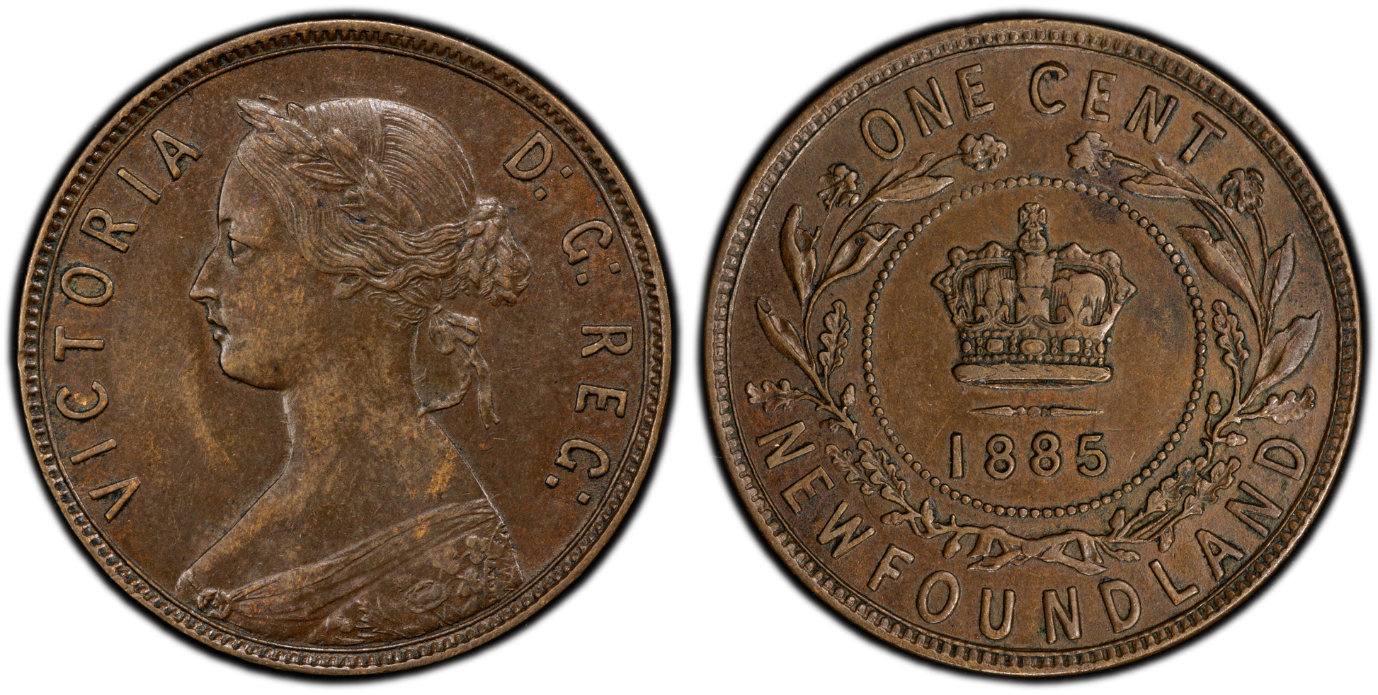 1885 Newfoundland One Cent - PCGS AU55 - Queen Victoria - One Cent Newfoundland 1885 Large Cent - Rarer Date, Low Mintage, High Grade