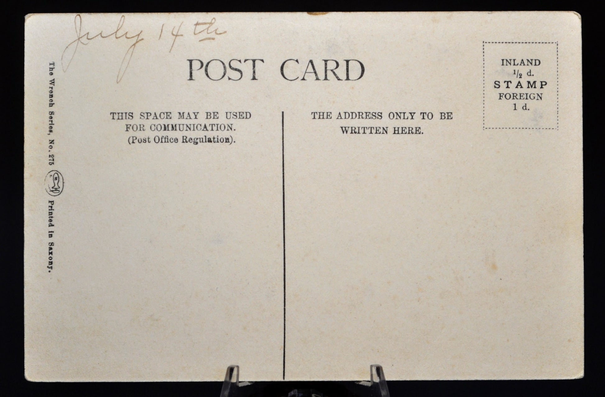 This listing is for the photographed Antique 1910s Postcard featuring an aerial view of Holyrood Palace, Edinburgh Scotland. This postcard is unposted but has the writing "July 14th" on the reverse. The Wrench Series postcards were published from 1900-04 by (John) Evelyn Leslie Wrench, and from 1904-06 as Wrench Postcards Ltd. Wrench went on to work for Lord Northcliffe's newspapers, including the Daily Mail, and to launch the English-Speaking Union in 1918. He was knighted in 1932.