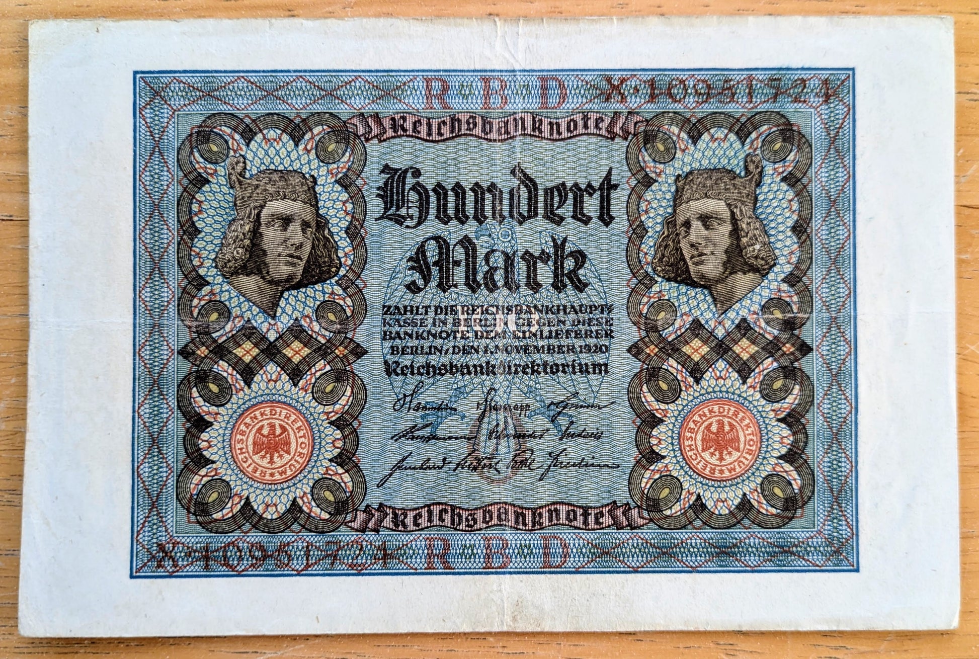 1920 Germany 100 Mark Note - Reichsbanknote - 8 Digit Serial Number, O Underprint - WWI Era German One Hundred Marks Banknote - P#59b