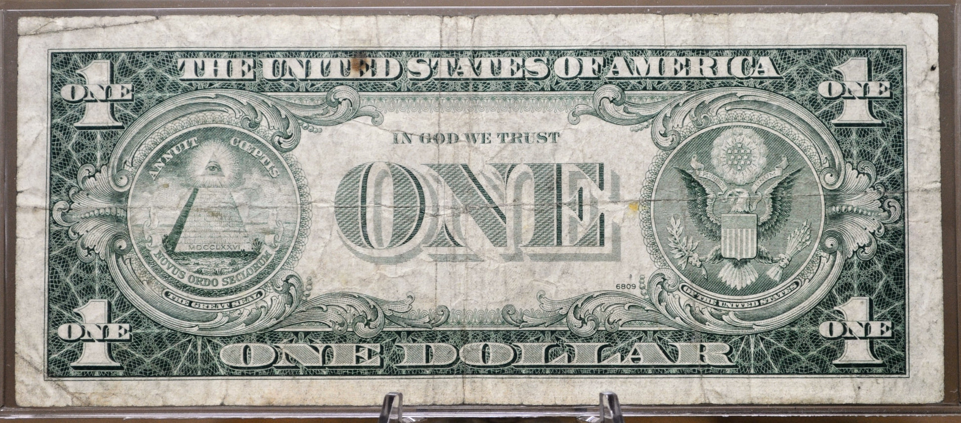 This listing is for the photographed 1935 H Silver Certificate 1 Dollar Fancy Repeater Serial Number Note. The serial number for this note has a duo and 5-in-a-row repeating set of digits, 99144444, making it a highly sought-after find! Fine (F) grade/condition, visible folds and signs of circulation, as pictured. A great novelty note for any collection! Fr#1618 (Friedberg number 1618).