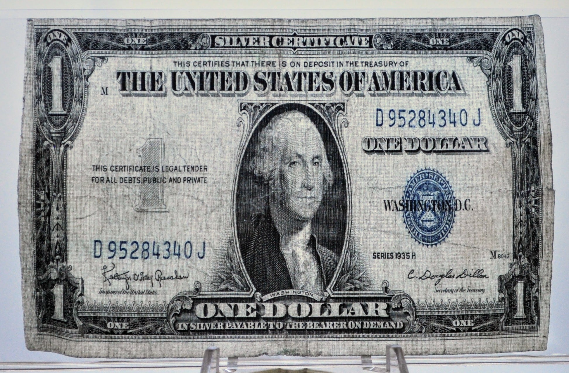 Awesome 1935H Shrunken Silver Certificate 1 Dollar Banknote - 4.5" Length - Unique 1935 Shrunken Error Silver Cert Blue Seal Note - Fr.1618