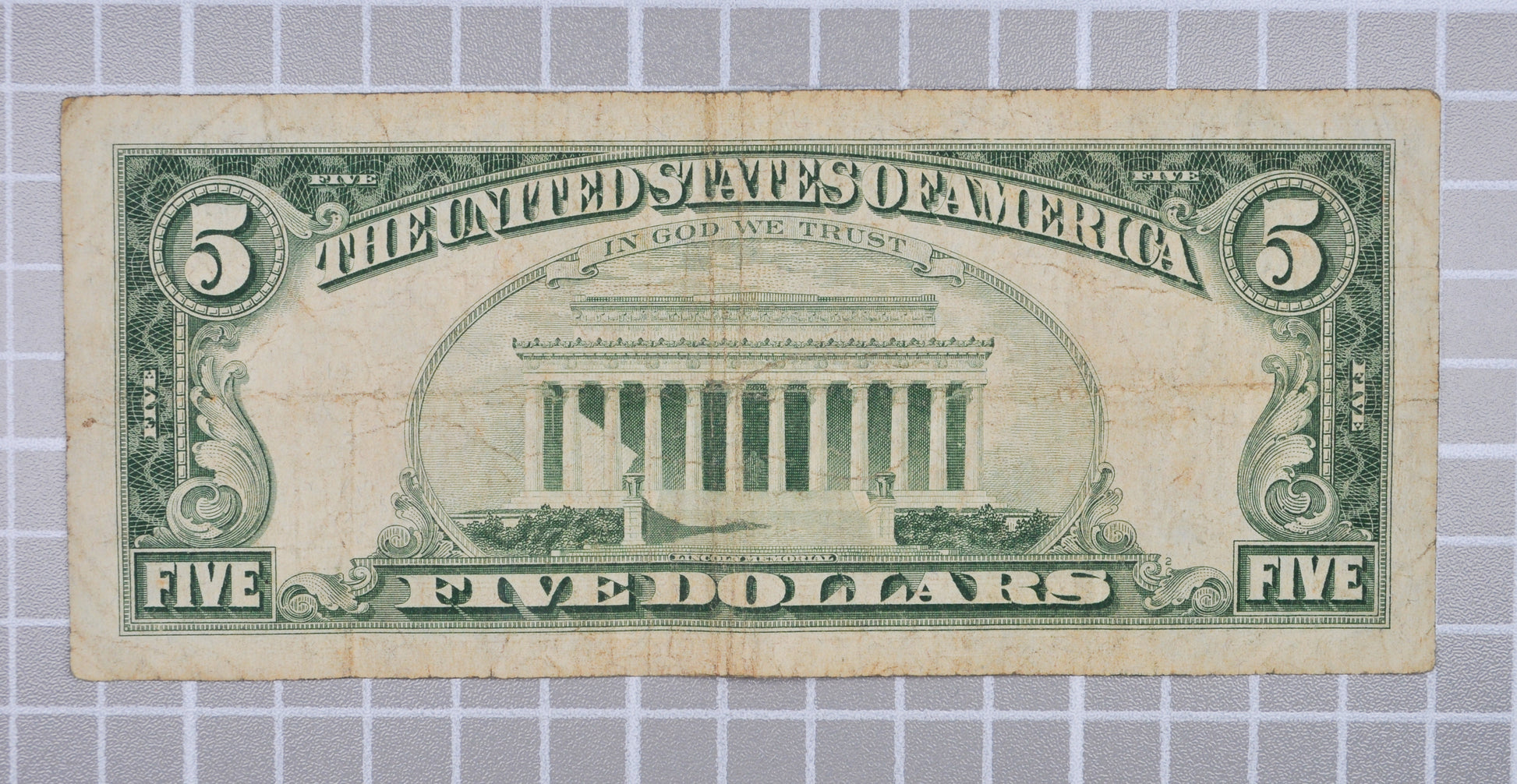 1963: Both the $5 United States Note and Federal Reserve Note were revised with the motto IN GOD WE TRUST added to the reverse and WILL PAY TO THE BEARER ON DEMAND removed from the obverse. Also, the obligation on the Federal Reserve Note was shortened to its current wording, THIS NOTE IS LEGAL TENDER FOR ALL DEBTS PUBLIC AND PRIVATE. Also during this time, production of Silver Certificates end, including the $5.