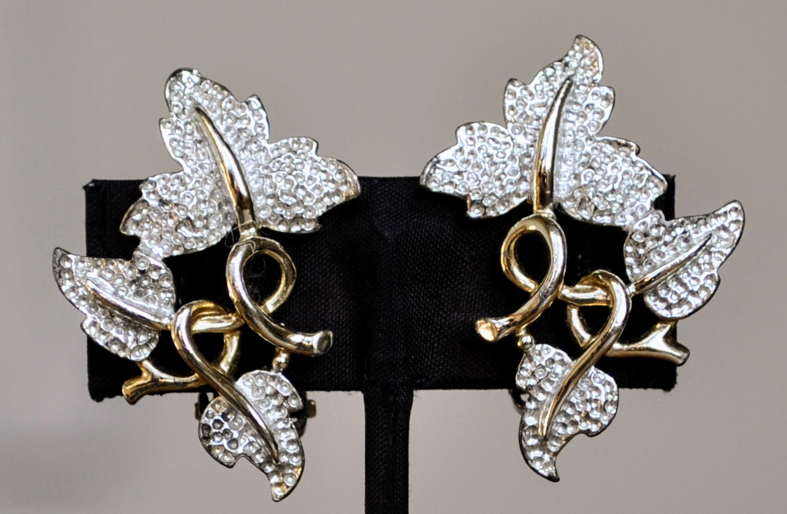 This listing is for the photographed Vintage Sarah Coventry Silver and Gold Toned Ivy or Grapevine Clip-On Earrings. Beautiful two-toned statement earrings that feature a winding leaves and vines design. Vintage style clip-on earrings, cool find! These earrings are signed "Sarah Cov" on the back of the clip-on mechanism, confirming their manufacturer. Excellent 1950s statement piece for any collection! Perfect for both casual and formal wear.