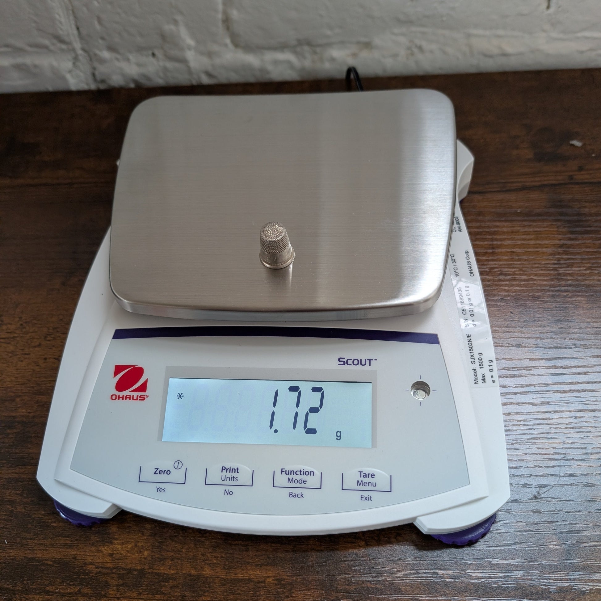 This thimble is about .75 inches tall and weighs 1.7 grams of sterling silver.