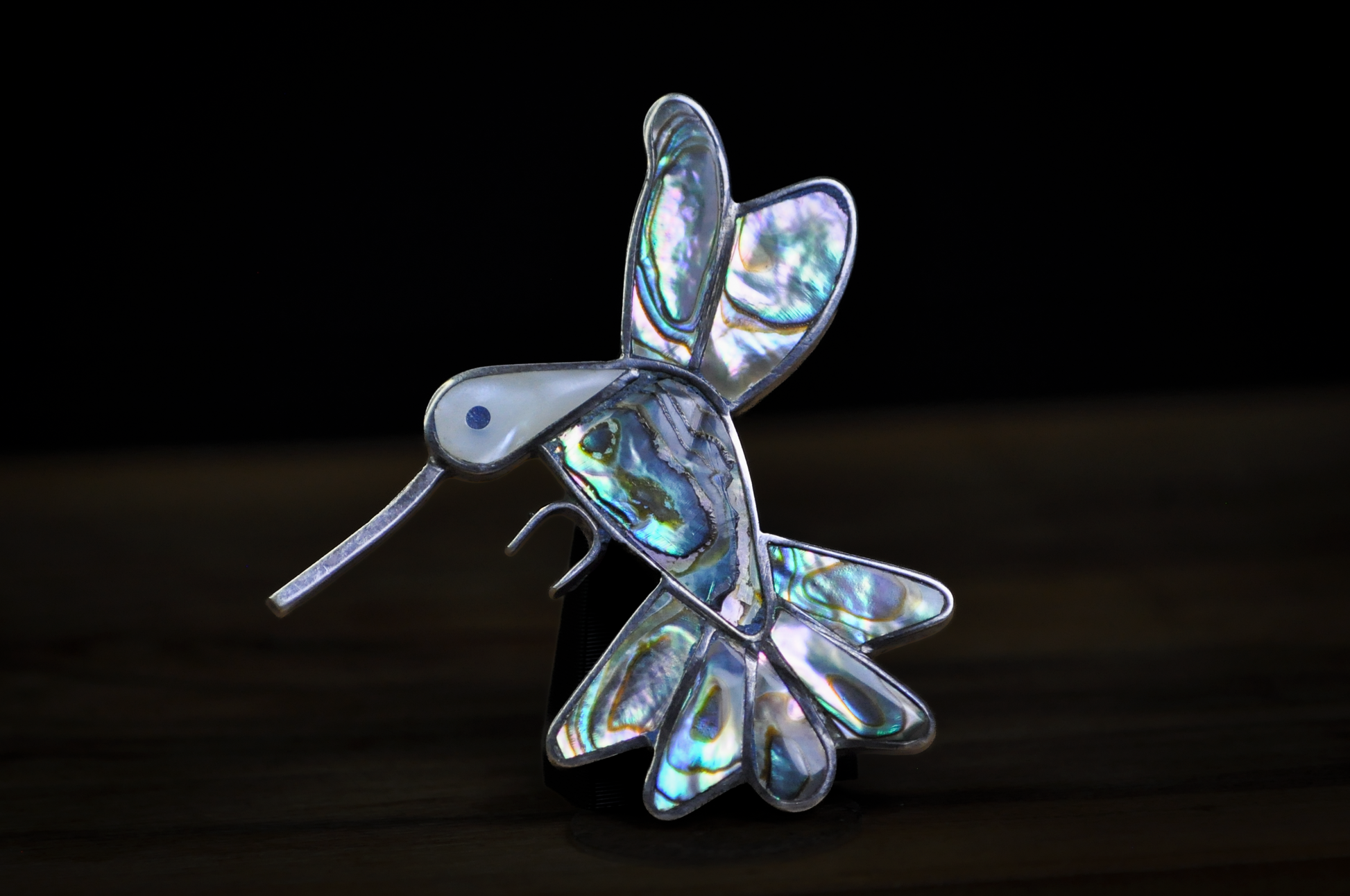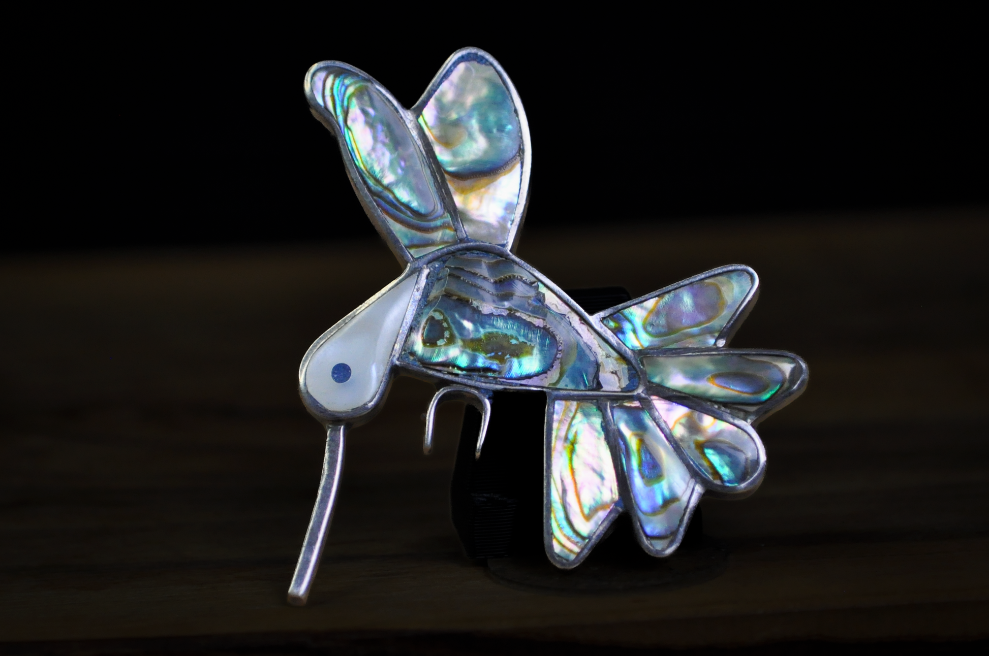 Vintage Mexican Hummingbird Brooch Abalone & Mother of Pearl Inlay - Iridescent Abalone Hummingbird Brooch Vintage Mexican Classic