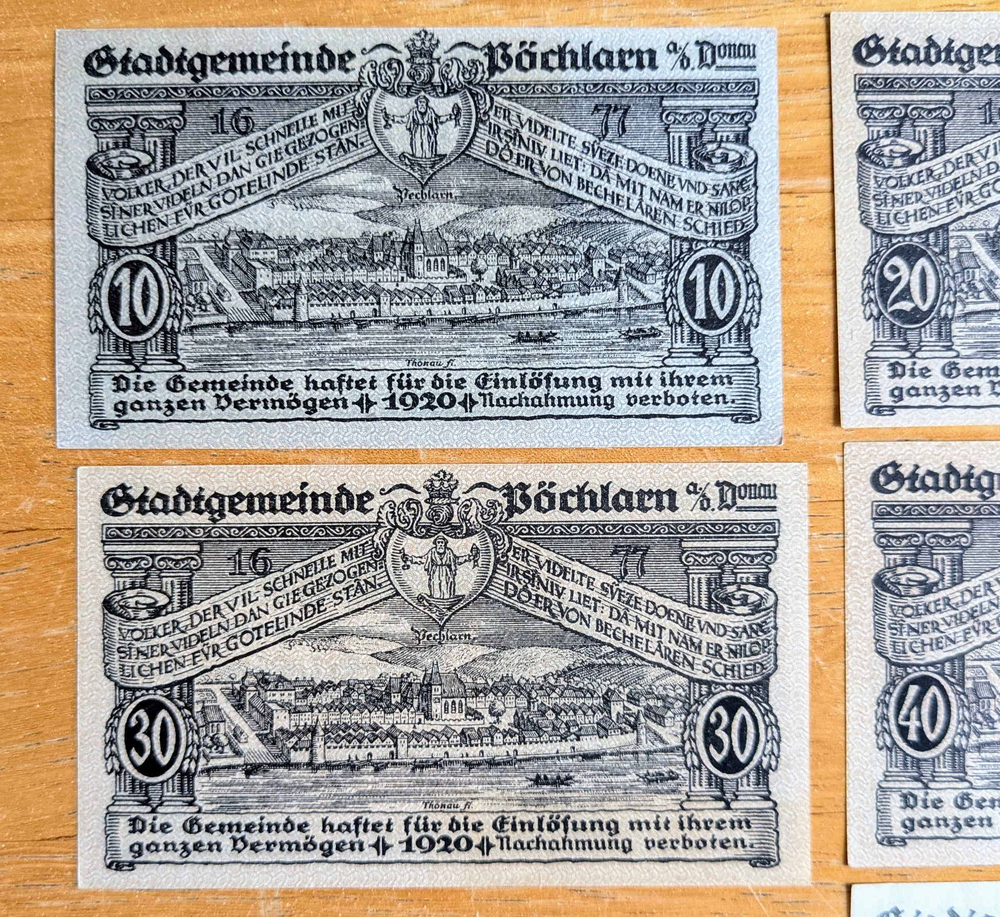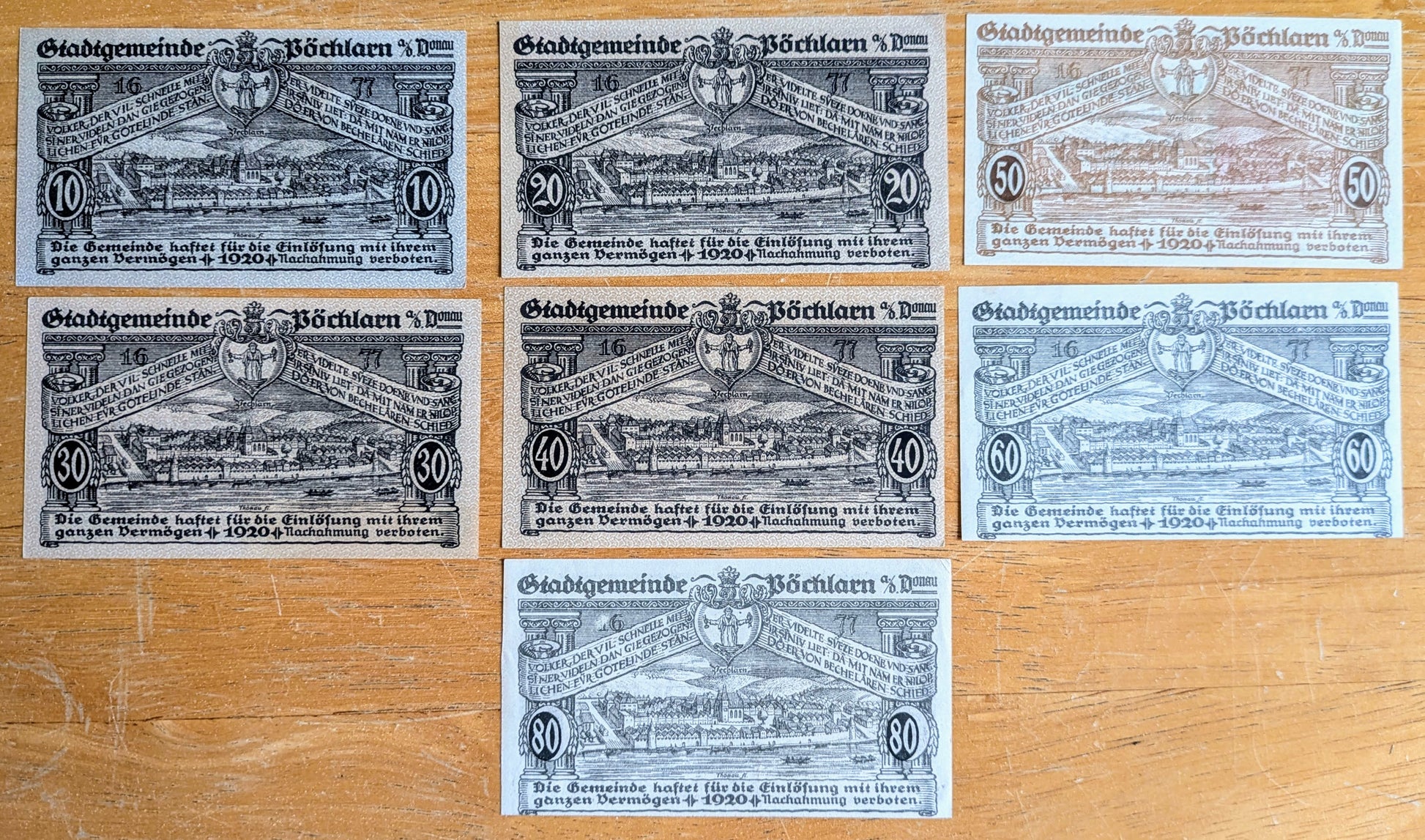 Rare 1920 Pochlarn Austria Heller Notgeld Complete Set - 10, 20, 30, 40, 50, 60, 80 Heller - 1920 Austria Emergency Note Full Heller Set