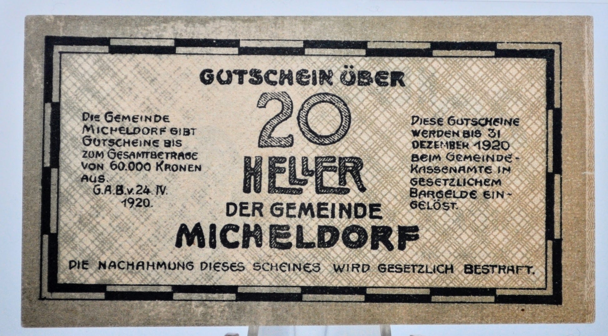 1920 Micheldorf Upper Austria 20 Heller Notgeld - Monument Note - Austrian Emergency Currency - 1920 Austria Twenty Heller Note