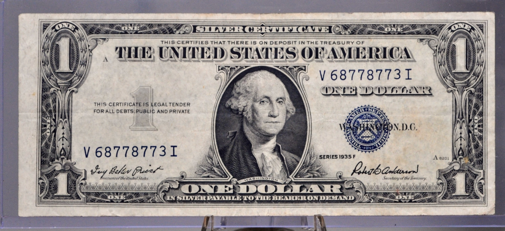 1935 F Silver Certificate 1 Dollar Banknote - Fancy Pattern Serial Number - 1935F Blue Seal Silver Cert Fancy Serial Note - Fr. 1615