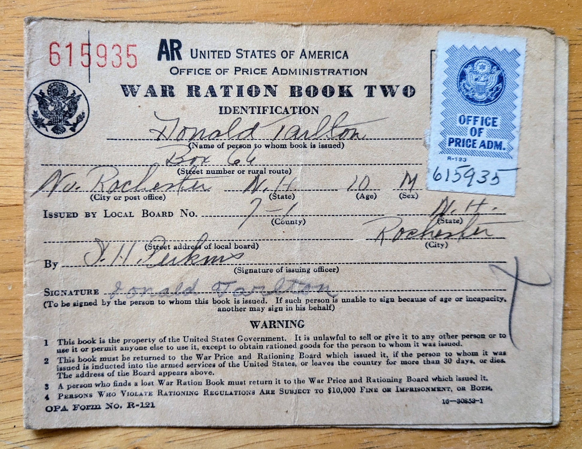 This listing features a 1942 Vintage War Ration Book No. 2 from World War 2. These booklets do not have any remaining stamps inside; all have been used. Fully issued booklets. All books are from residents of New Hampshire at the time, many from the same family. Great condition, super interesting find!