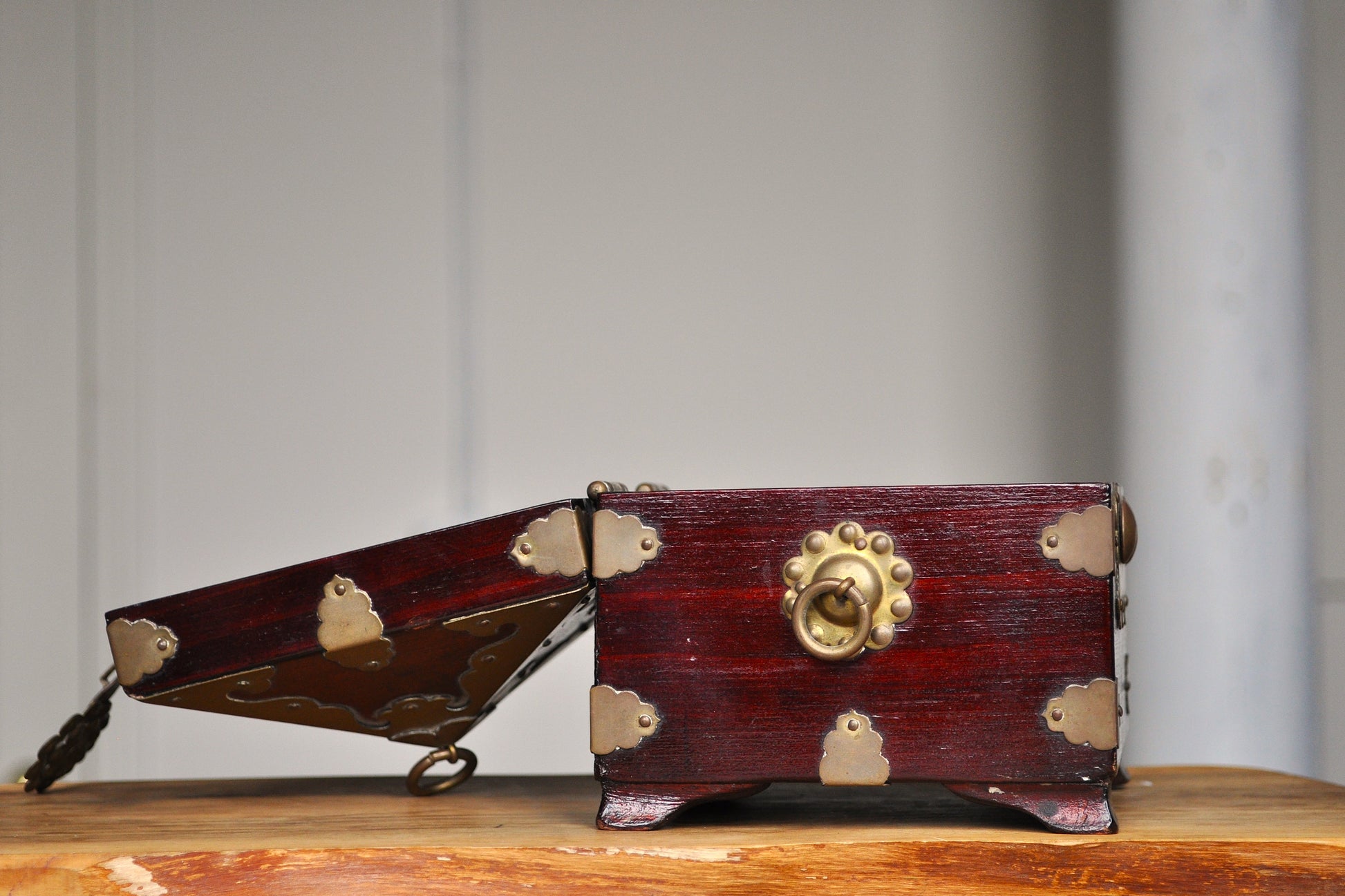 Antique Korean Brass and Wood Seal Box - Prayer/Trinket Box - Treasure Chest - Joseon Dynasty Box