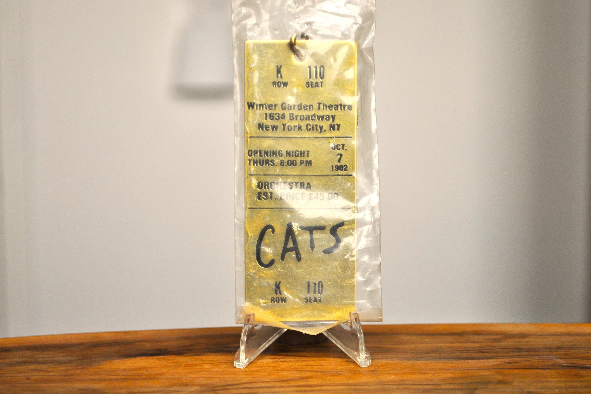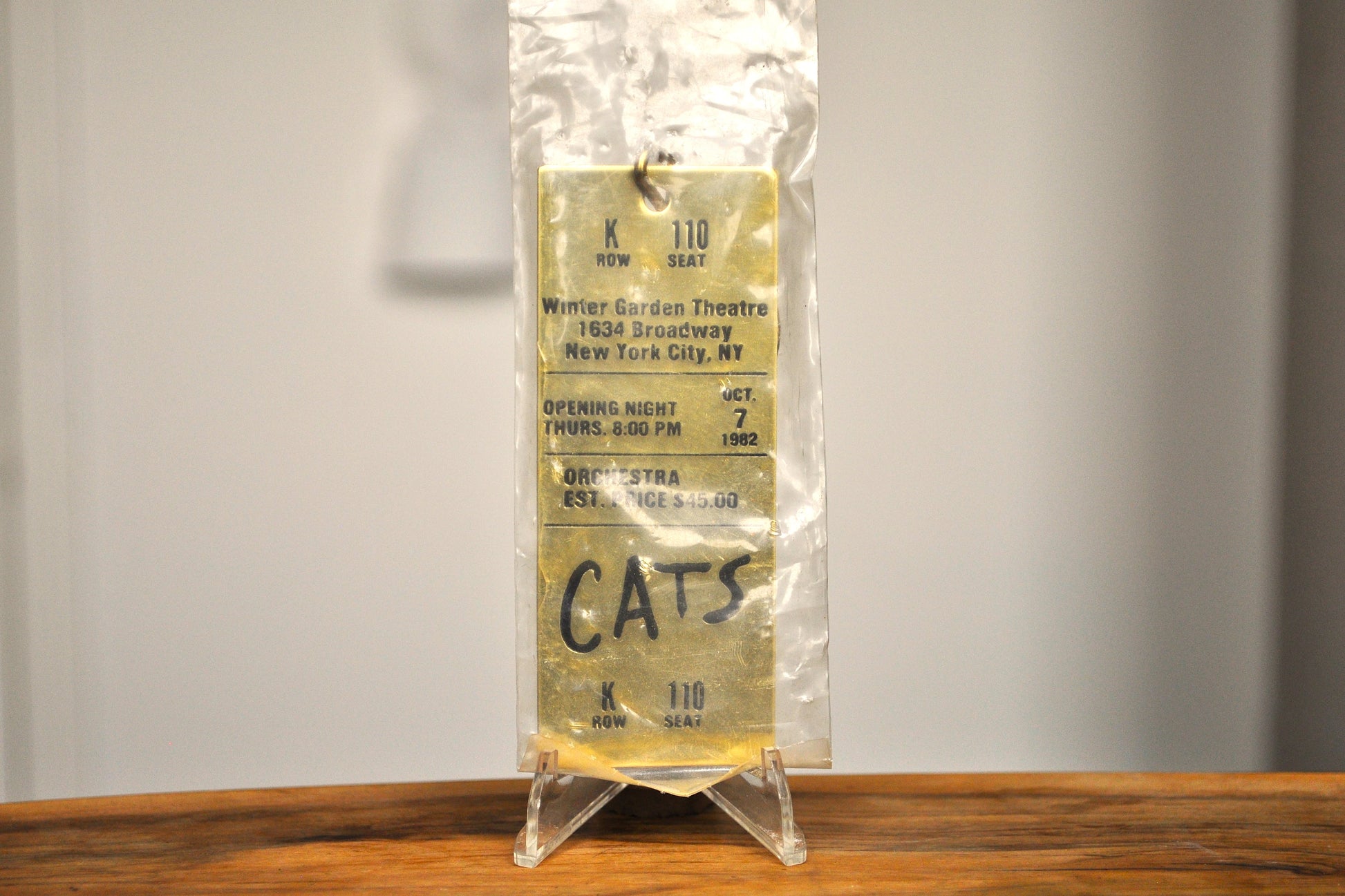 Vintage 1982 Brass "CATS" Gold Tone Keychain - Winter Garden Theatre Broadway Memorabilia - "CATS" Opening Night Brass Ticket Memorabilia - Unopened Brass Ticket Memorabilia