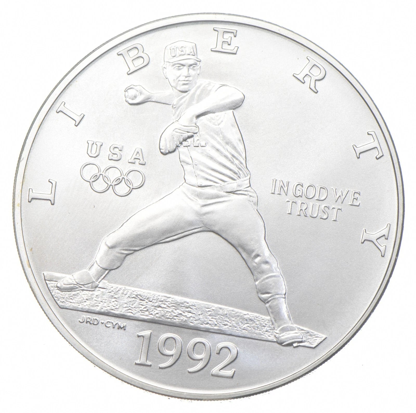 This listing is for a 1992 D UNC Commemorative SILVER Dollar U.S. Olympic Baseball Coin Uncirculated With Box and Certificate of Authenticity