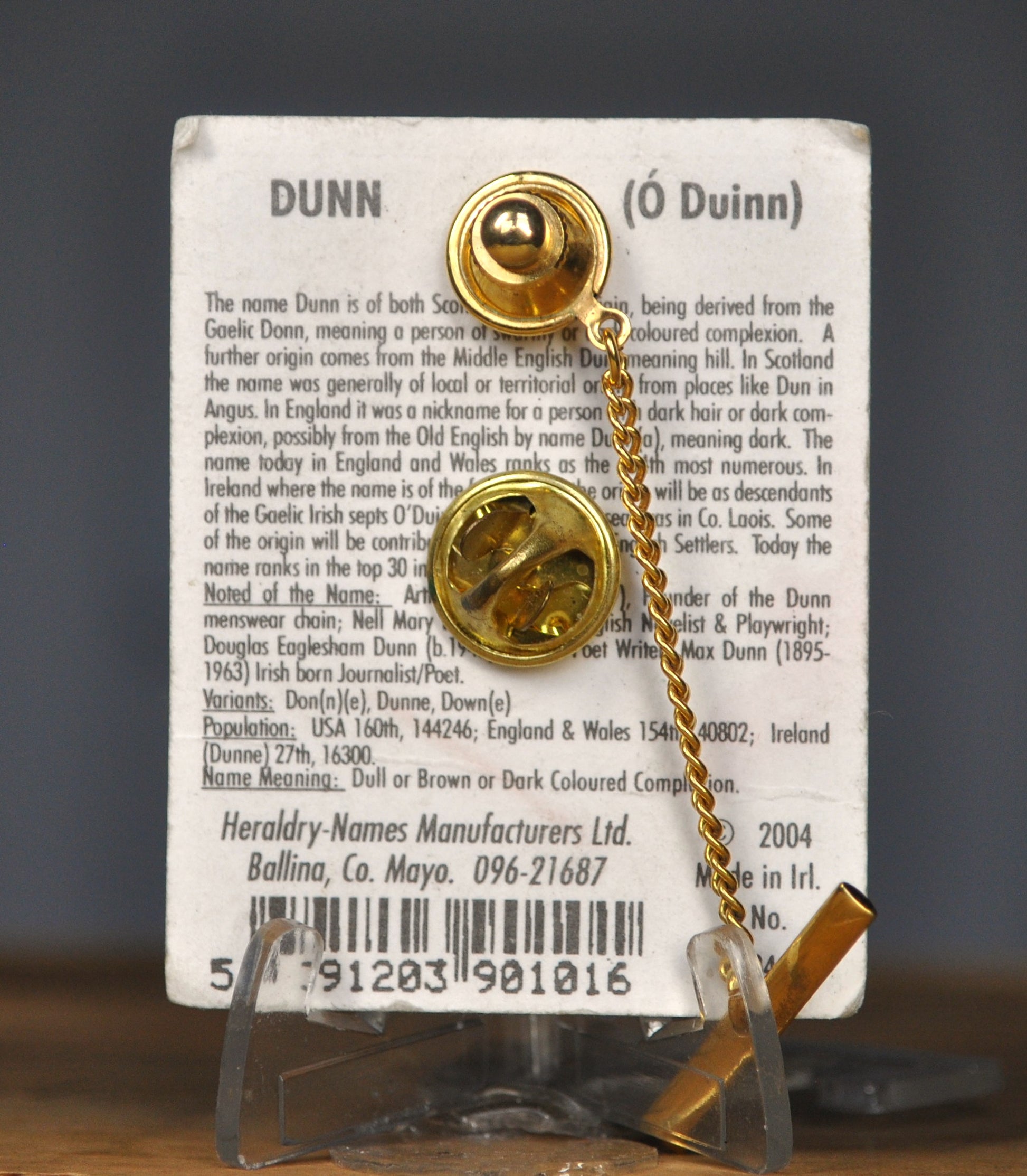 Irish Coat of Arms Disk Lapel Pin/Tie Tack - Dunn Family Crest Lapel Pin Set