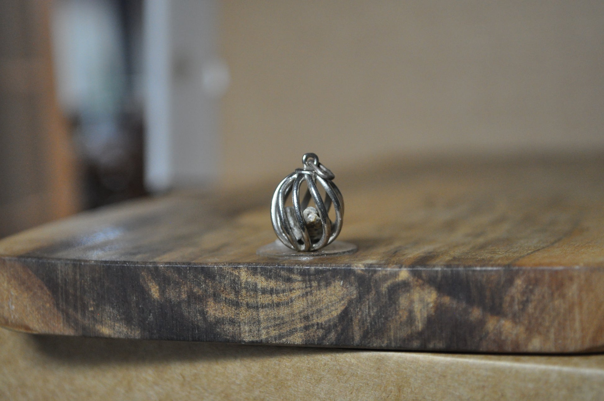 This listing is for the photographed Sterling Silver Curvy Cage with Rocks Charm. Unique sterling silver charm featuring a cage with wavy lines with two small pebbles inside. The bottom of the charm is stamped "STER". Cool gift for your geologist friends and family!