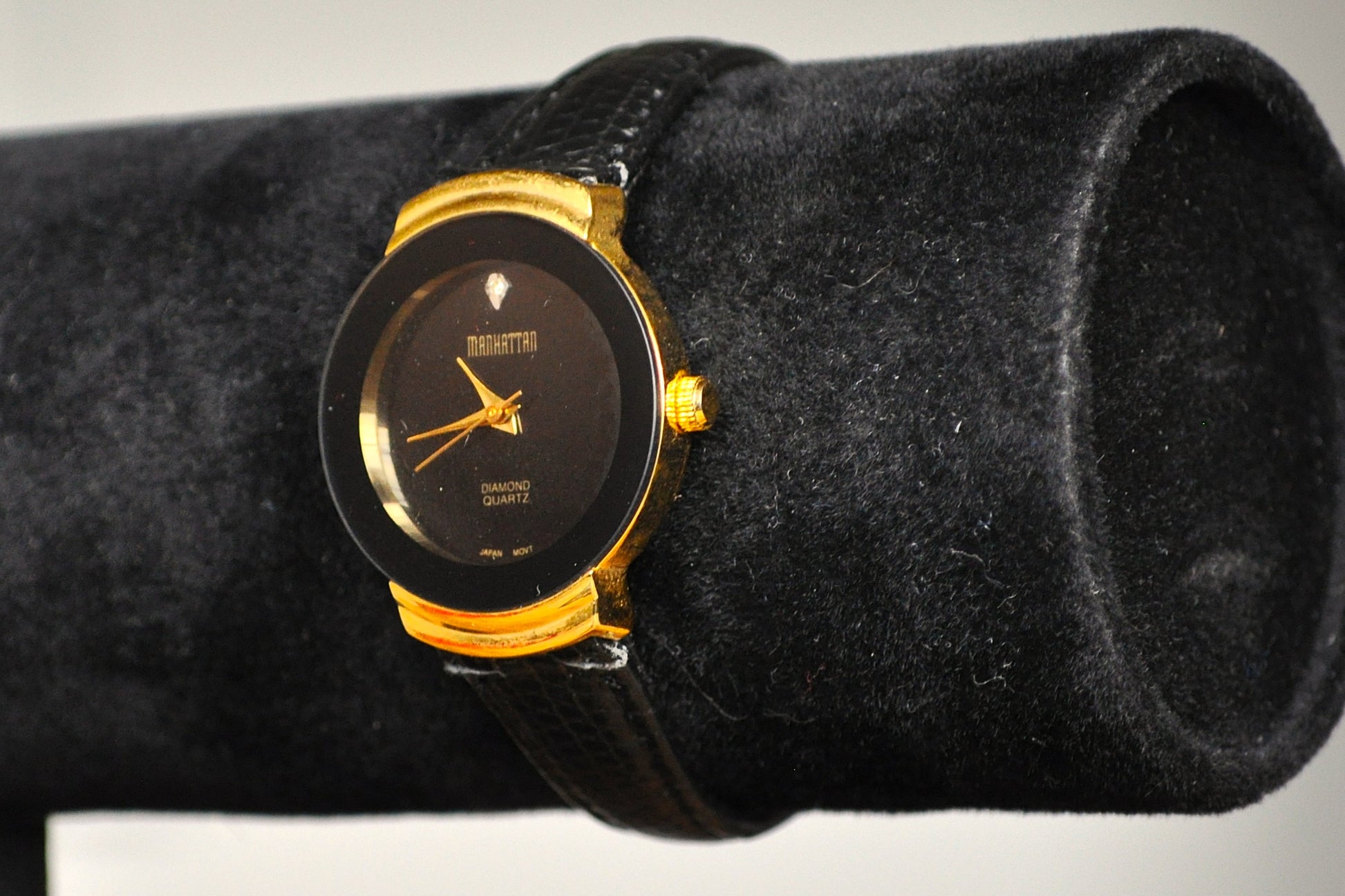This listing is for the photographed Sleek Stainless Steel Gold Tone Manhattan Diamond Quartz Analog Watch. This beautiful analog watch made by Manhattan is a stylish and cost effective piece of wrist jewelry perfect for all. Working watch with a new battery and has been tuned to EST.