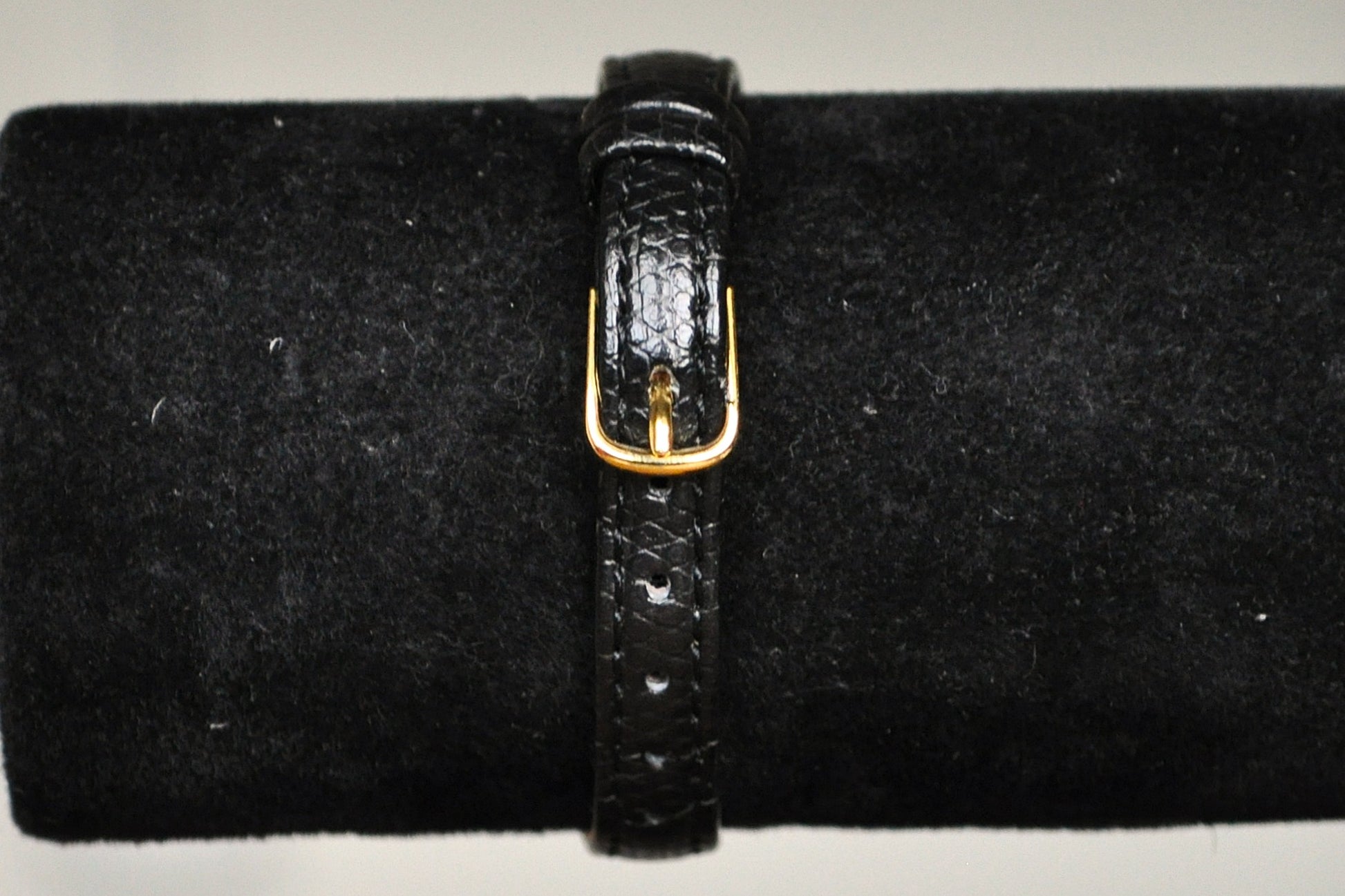 Sleek Stainless Steel Gold Tone Manhattan Diamond Quartz Analog Watch - Black Genuine Leather Watch - Working!