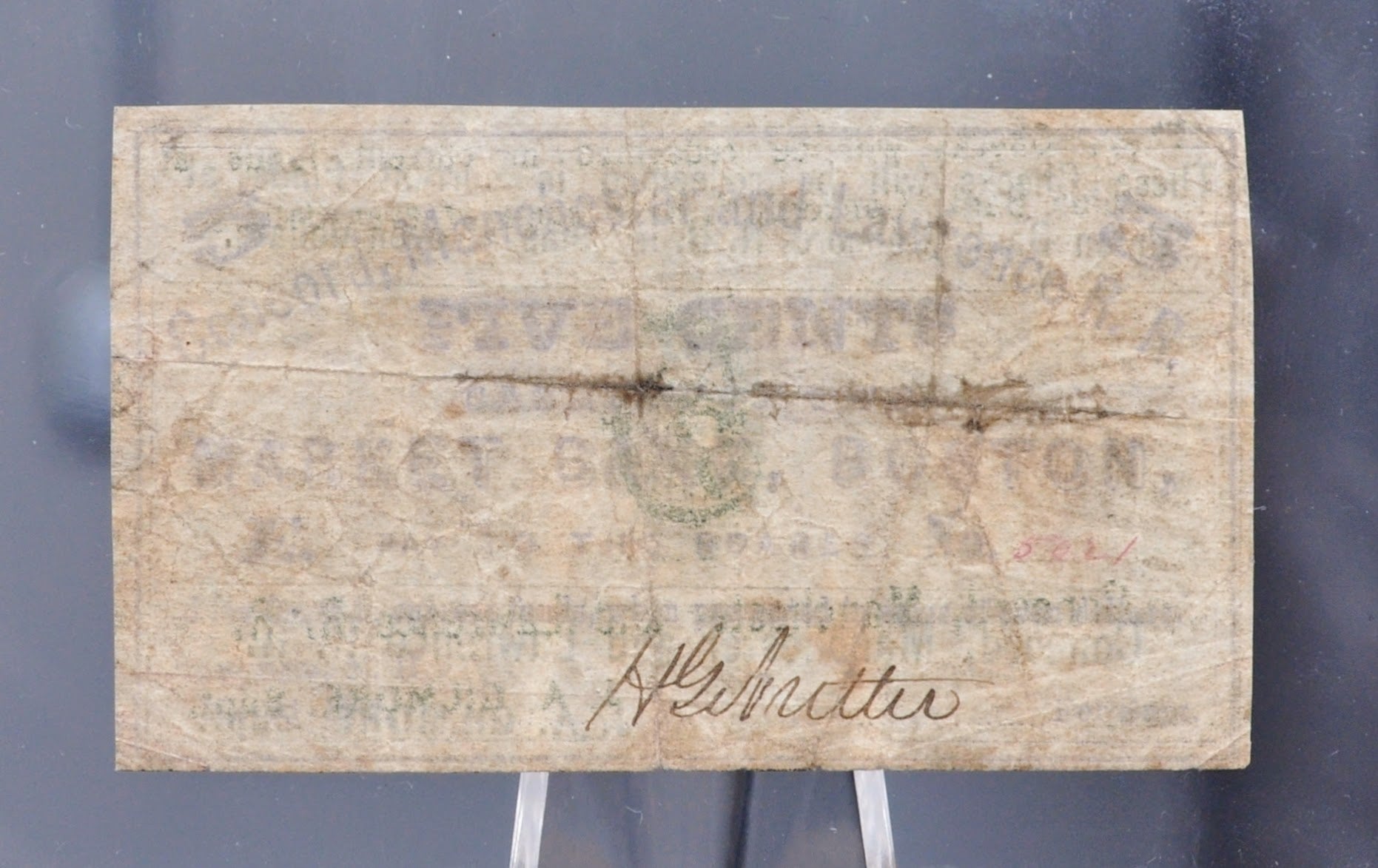 The Concord Railroad was chartered on June 27th, 1835, and initiated full service of the railroad on September 7th, 1842. The railroad quickly gained popularity among New Hampshire residents, becoming one of the most profitable railroads in all of New England at the time. The Manchester & Lawrence Railroad was chartered on June 3rd, 1847. The railroad operated independently until it was leased to the Concord Railroad in 1850, when the Concord, Manchester & Lawrence Railroad was formally established. The railroads operated together from 1850 until 1887, with the exception of a short time between 1853-56 when the Manchester & Lawrence Railroad operated independently before rejoining the Concord Railroad in their operations. The railroad issued two types of merchant scrips, one on November 1st, 1862, and another on December 1st, 1862. These scrip notes were used much like modern day coupons, as these notes would be issued by companies in association with their operating banks, in this case both the Market Bank Boston and the Union Bank in Concord, NH, to give their customers discounts of the identified amount off of their purchase.
