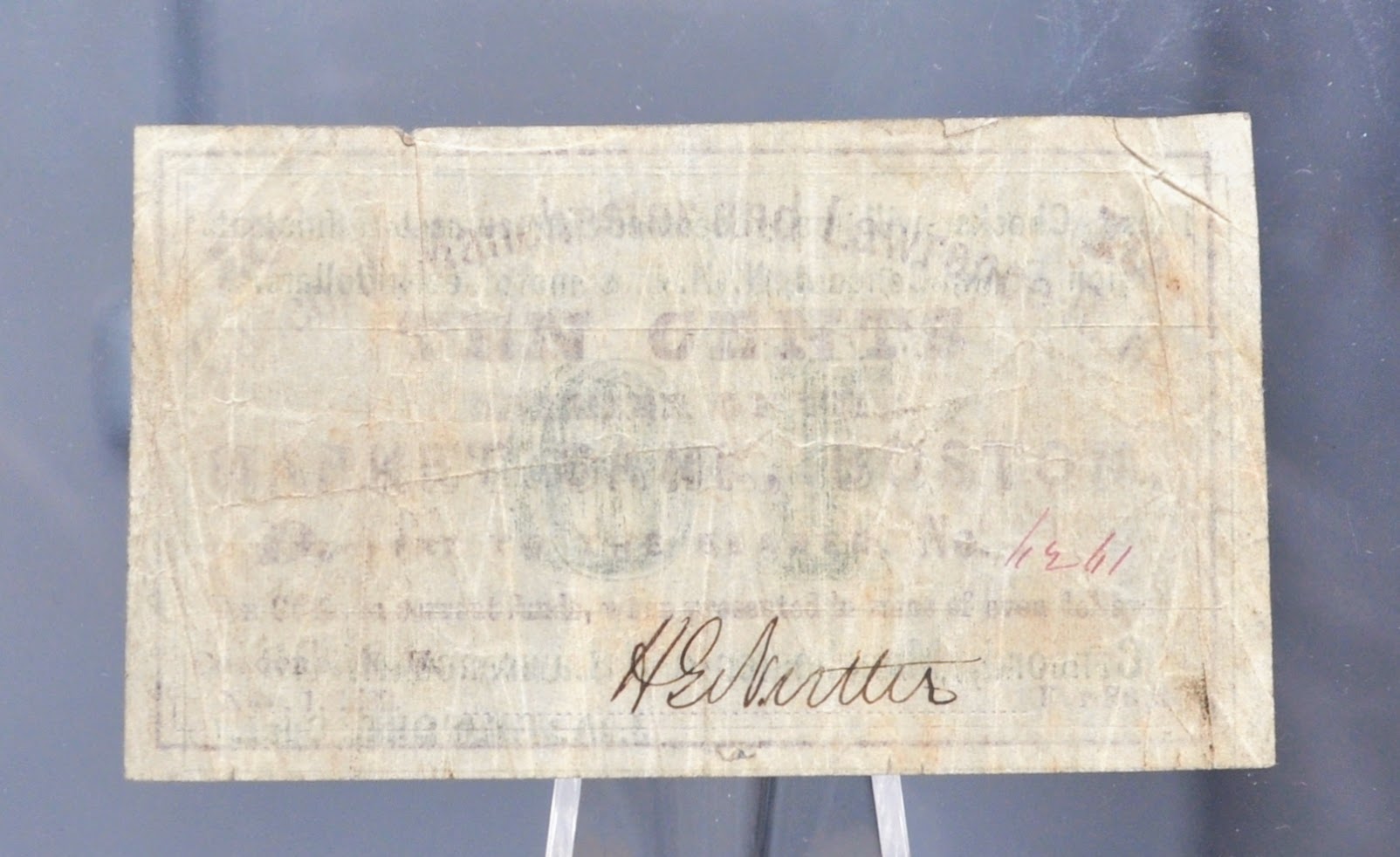 The Concord Railroad was chartered on June 27th, 1835, and initiated full service of the railroad on September 7th, 1842. The railroad quickly gained popularity among New Hampshire residents, becoming one of the most profitable railroads in all of New England at the time. The Manchester & Lawrence Railroad was chartered on June 3rd, 1847. The railroad operated independently until it was leased to the Concord Railroad in 1850, when the Concord, Manchester & Lawrence Railroad was formally established. The railroads operated together from 1850 until 1887, with the exception of a short time between 1853-56 when the Manchester & Lawrence Railroad operated independently before rejoining the Concord Railroad in their operations. The railroad issued two types of merchant scrips, one on November 1st, 1862, and another on December 1st, 1862. These scrip notes were used much like modern day coupons, as these notes would be issued by companies in association with their operating banks, in this case both the Market Bank Boston and the Union Bank in Concord, NH, to give their customers discounts of the identified amount off of their purchase.