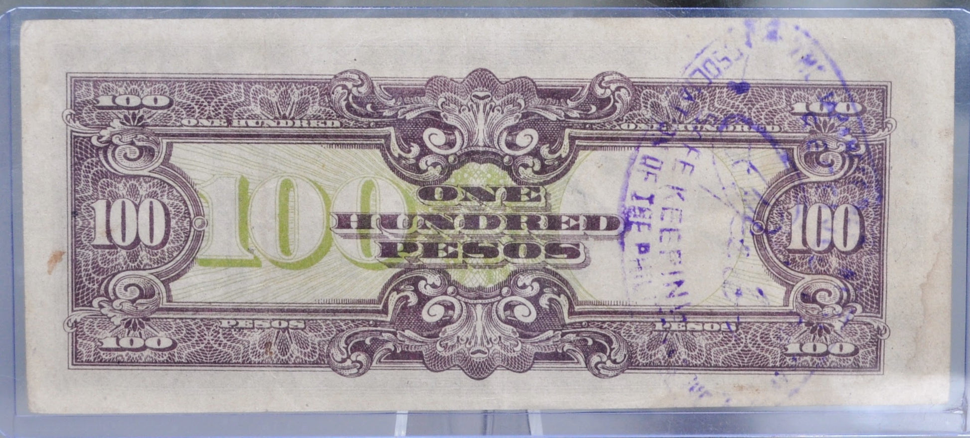 1943 Philippines 100 Peso Note - WW2 Japan Occupation - JAPWANCAP Stamp - 1943 Japanese Government One Hundred Peso Stamped Note - P#112a