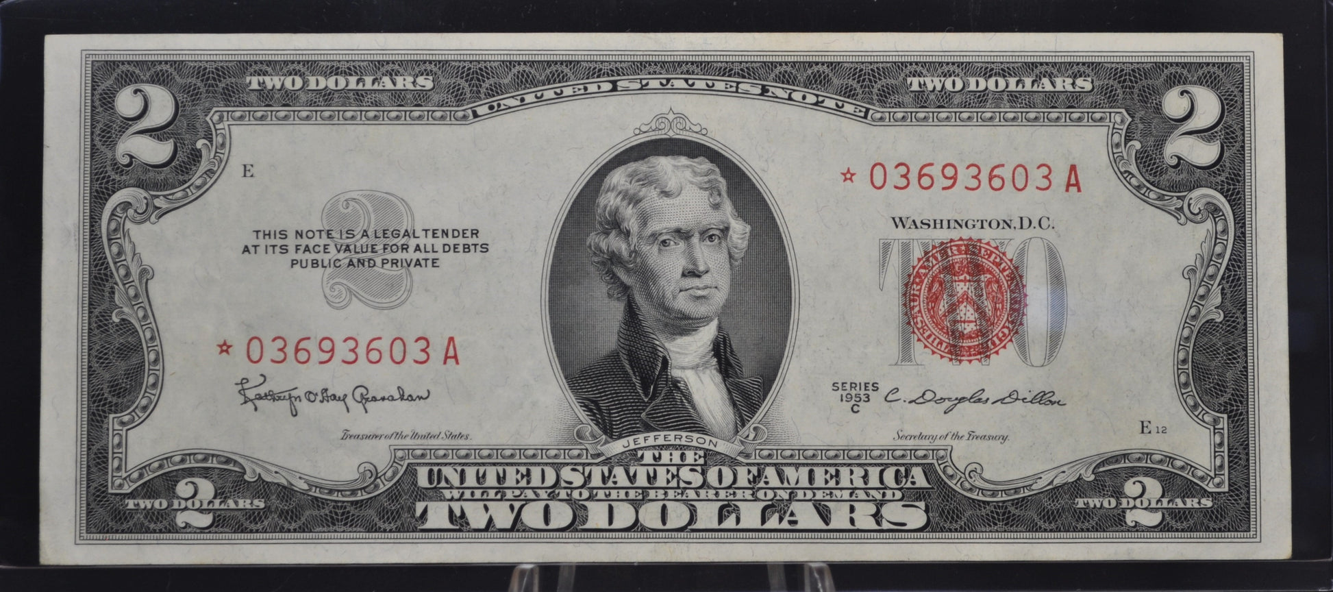 1953 STAR NOTE Red Seal 2 Dollar Star Note - AU - 1953 Two Dollar U.S. Star Note 1953 Star Note Fr#1510* 2 Dollar Red