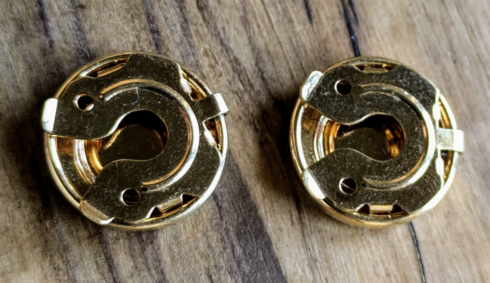 Cool Anson Patented Goldtone and Black Stone Round Button Cover Set - Patent No. 3777336 - Vintage 1970s Anson Gold Button Cover Clips