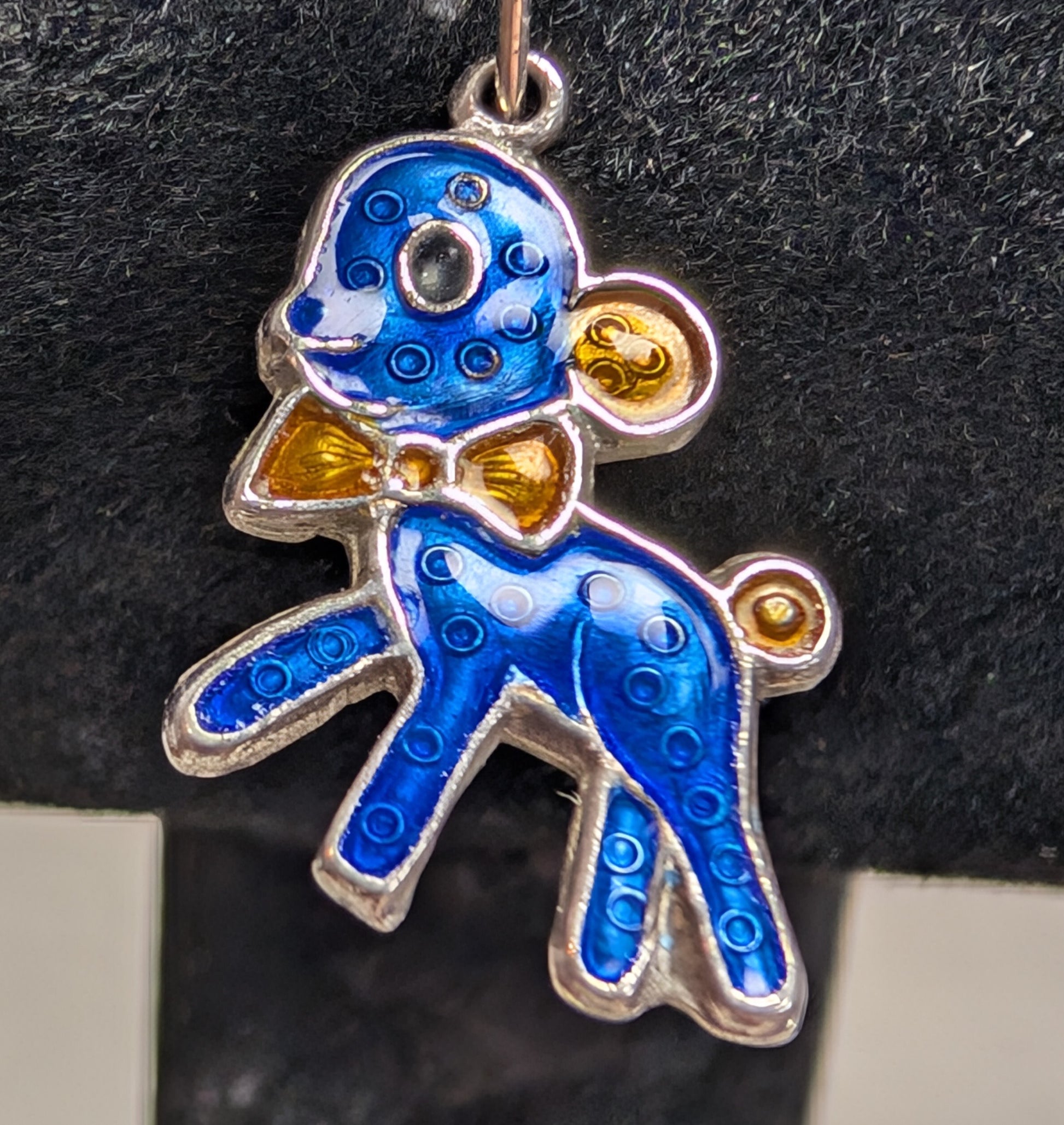 This listing is for the pictured Vintage Sterling Blue Enamel Deer or Lamb with Golden Yellow Bow