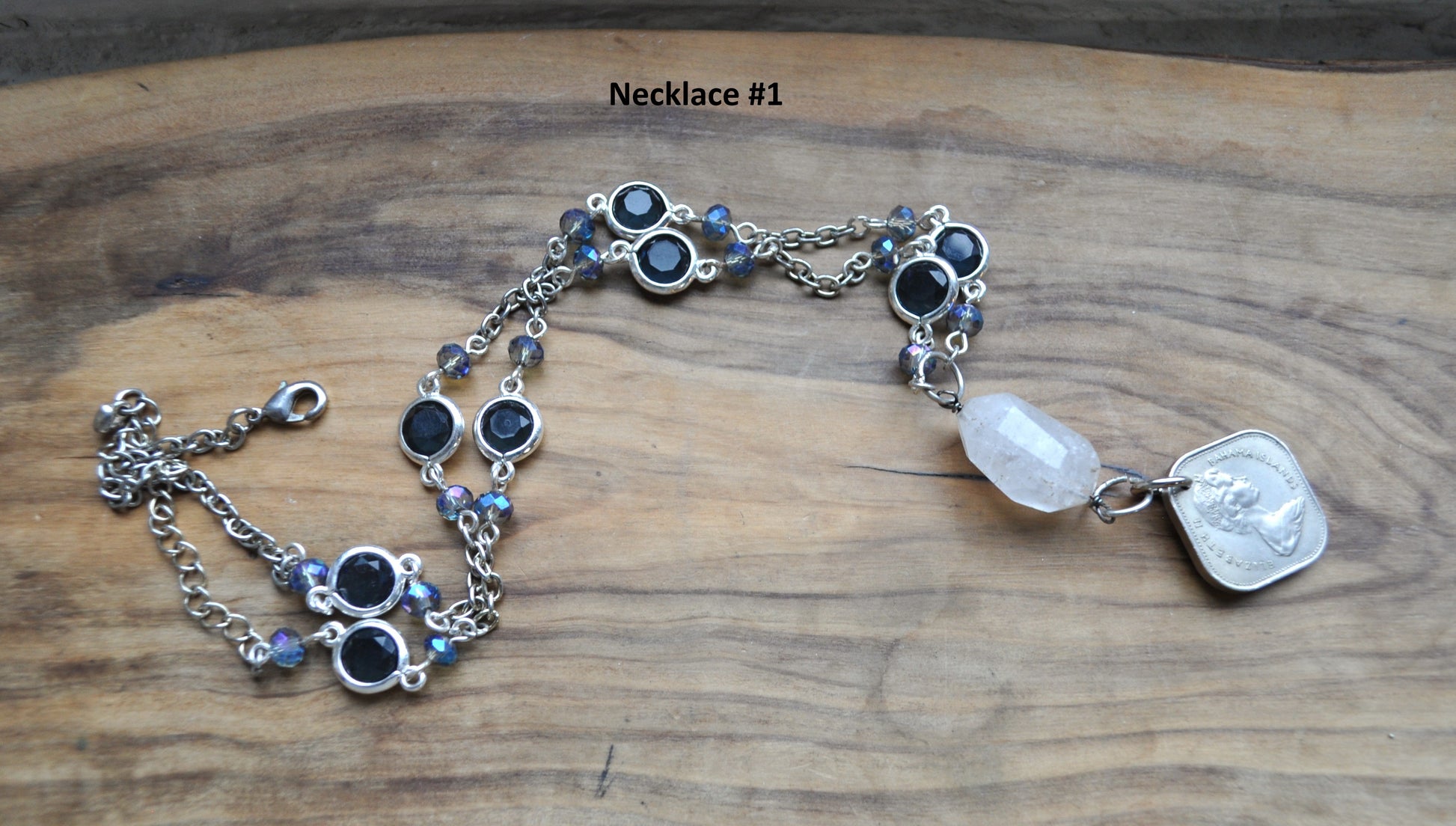 Necklace #1 features a clear quartz pendant in addition to the coin pendant*