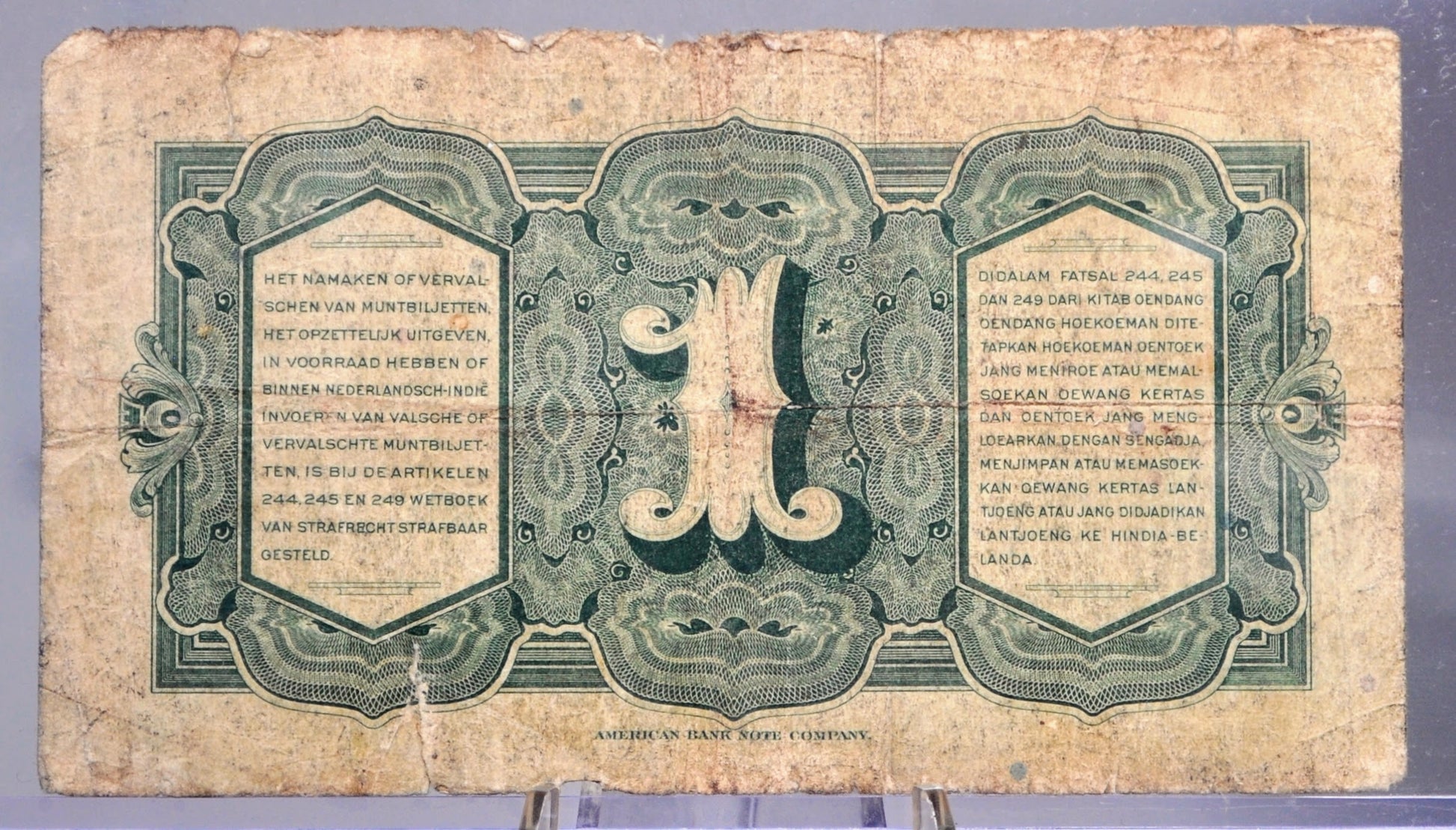 1943 Dutch East Indies 1 Gulden Banknote - 1943 Muntbiljet Issue - Netherlands Indies WWII Occupation One Gulden Note 1943 - P#111a