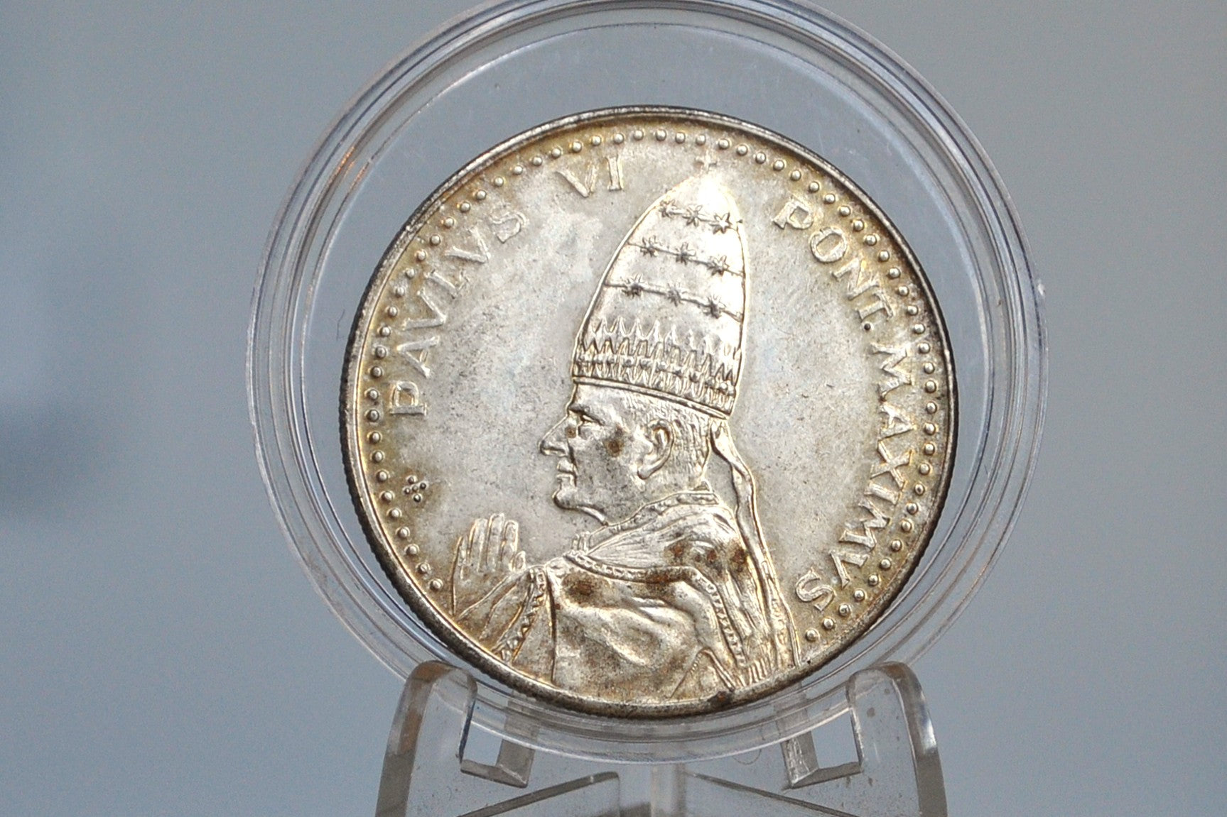 This listing is for the photographed 1975 Sterling Silver Vatican City Commemorative Pope Paulus VI Medal. This catholic medal made of sterling silver features Pope Paul VI on the front of the medal with the backside depicting the Holy Door for the Anno Santo (Holy Year) with Saint Peter and Paul guarding the way. Pope Paul VI is best known for creating the Second Vatican Council which focused on adapting the church to the new changes of the modern world.