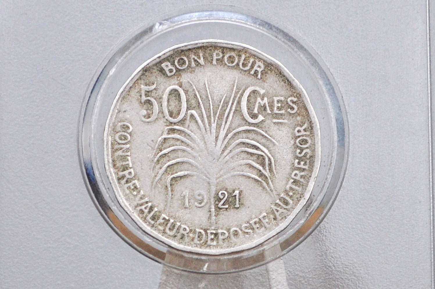 RARE 1921 50 Centimes, Guadeloupe - XF Condition - Low Mintage - French Dependency - (Copy)