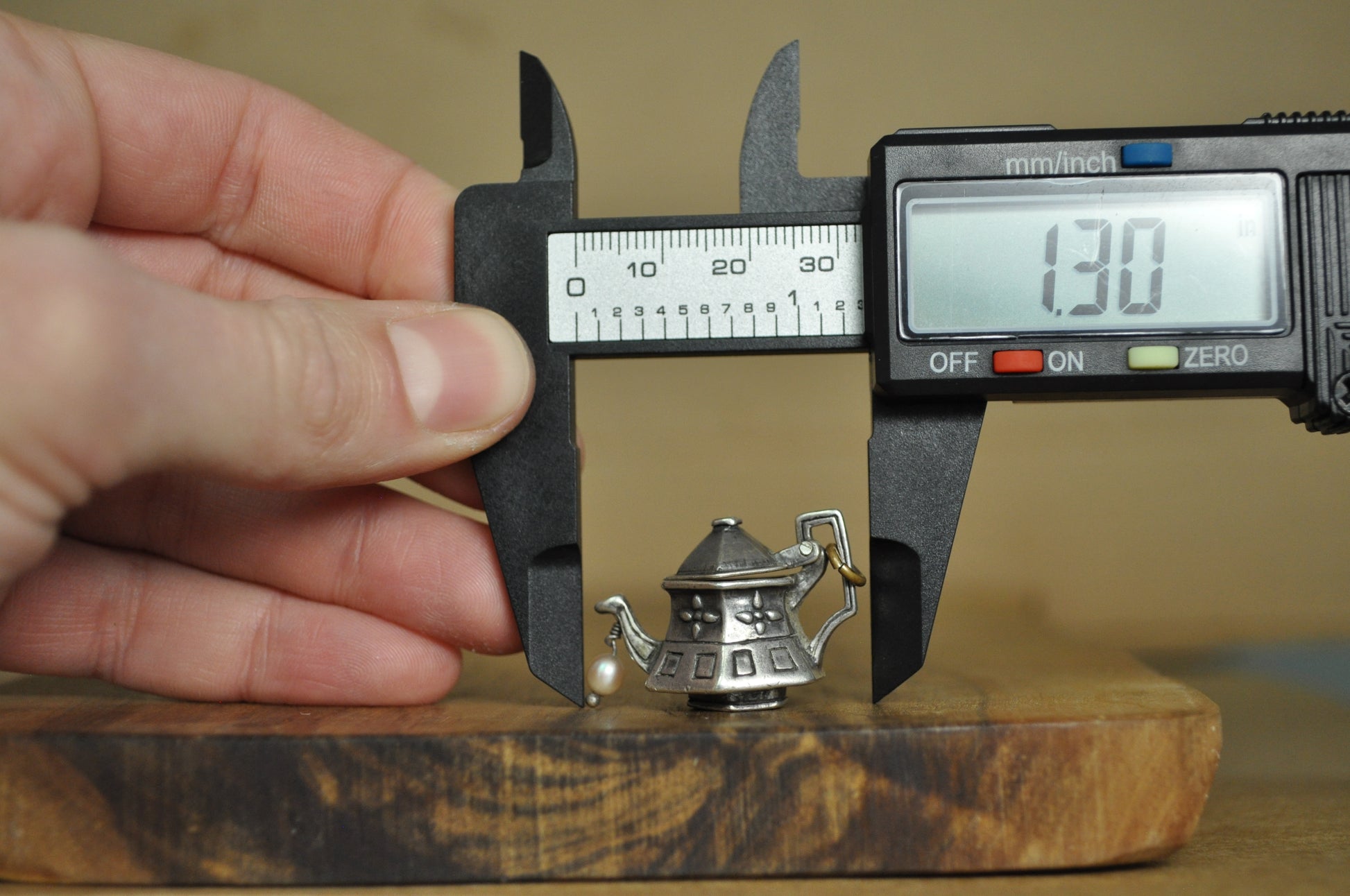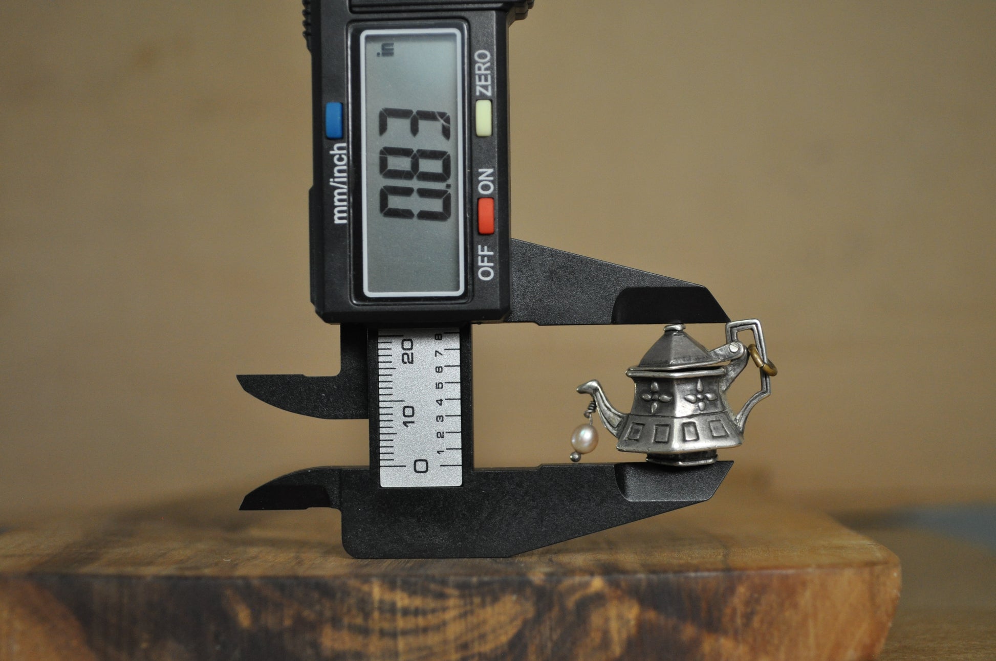 This listing is for the Vintage Sterling Silver Articulating Teapot with Pearl Charm. Stunning sterling silver charm featuring a teapot with an articulating top that is able to open. The spout features a small pearl. Adorning all sides of the c harm is a flower like design and the bottom is stamped with a squiggly N hallmark and "925". A heavier Victorian charm to support your love for tea!