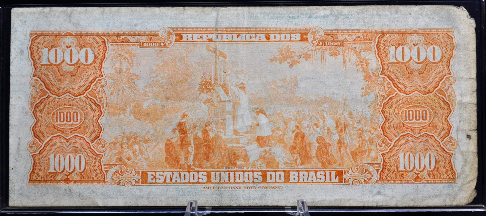 1967 Brazil Valor Legal 1 Cruzeiro Novo on 1000 Cruzeiros Note - Series 4361 - 1967 Brazilian One Cruzeiro Novo Stamped Note - P#187b