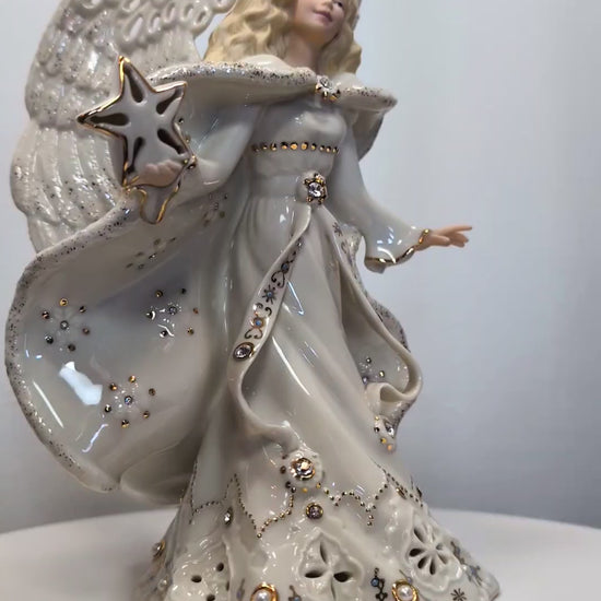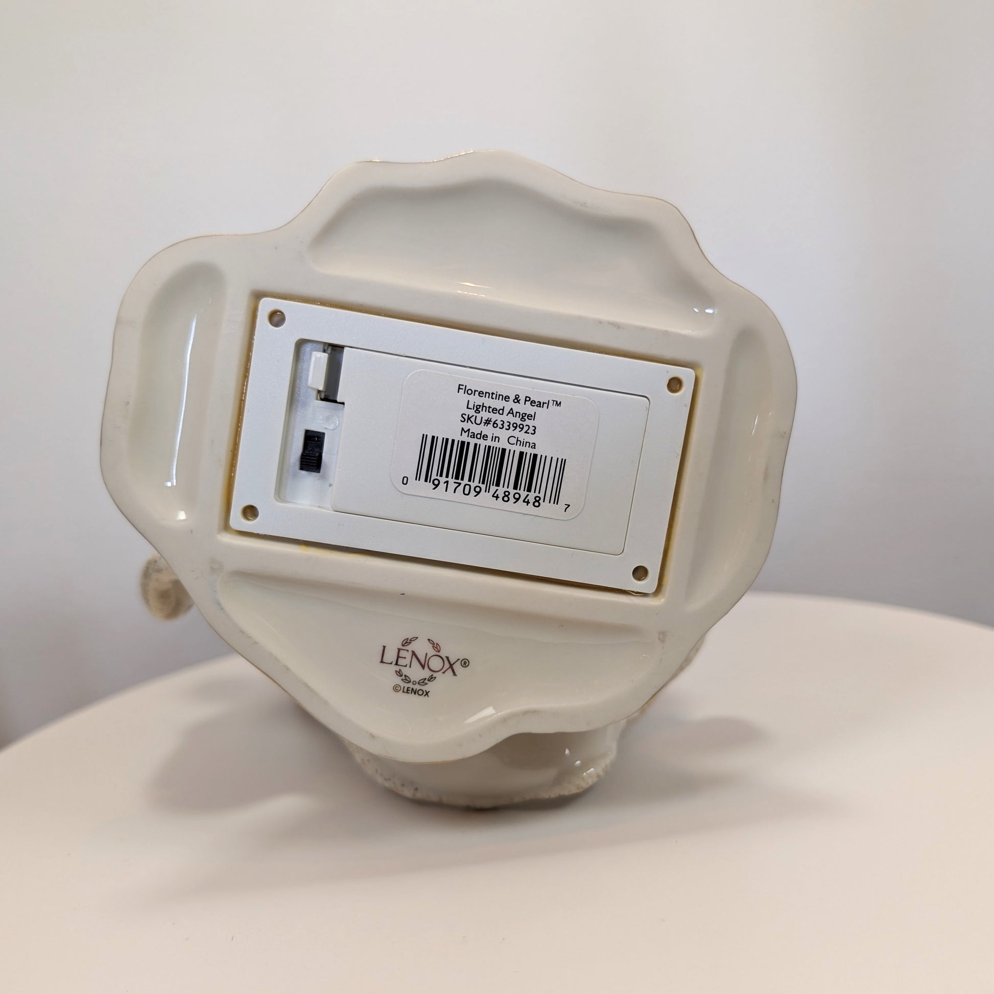 9" Lenox Florentine & Pearl Lighted Angel Ivory China 24kt Gold Leaf Faux Pearl