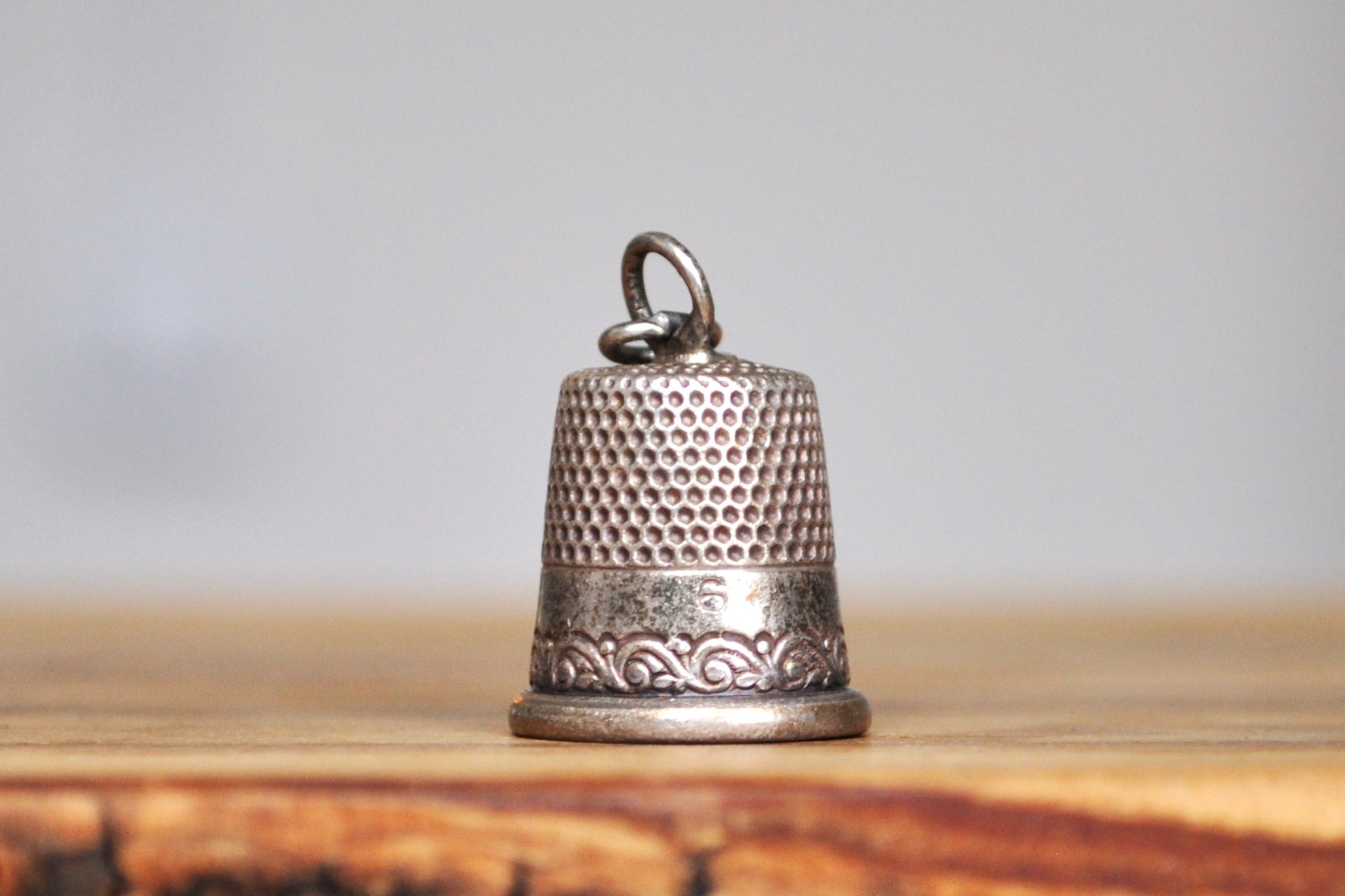 Sterling Silver Danecraft Thimble Charm - Size 6 - Lower Floral Vine Design - Chip at Top