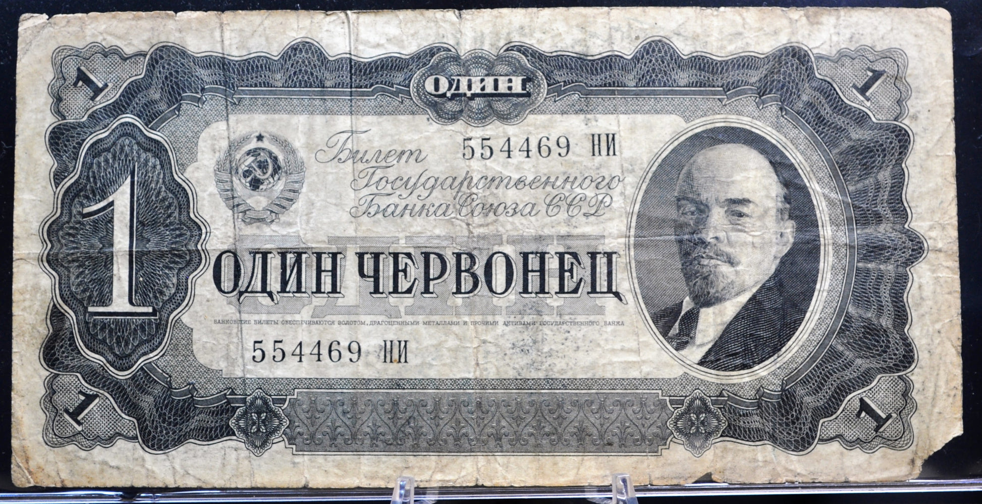 1937 Soviet Russia 1 Chervonetz Banknote - Vladimir Lenin Note - Early Soviet Union - 1937 USSR Russian One Chervonetz Note - P#202a