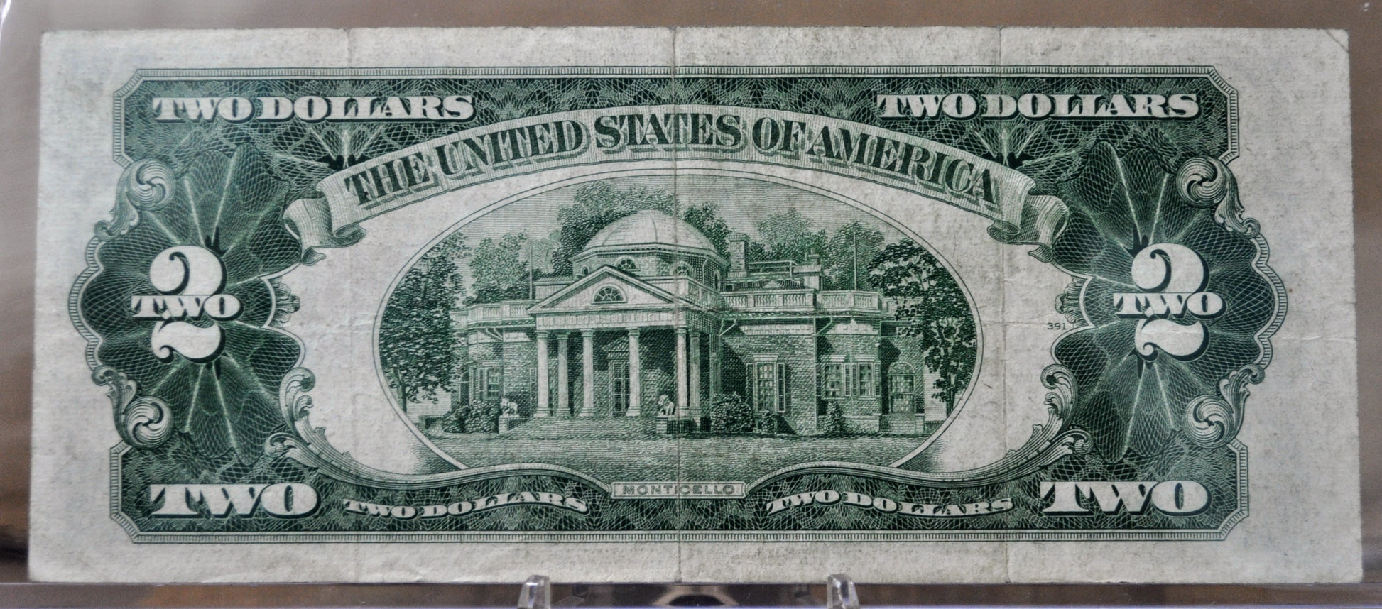 The United States two-dollar bill ($2) is a denomination of United States currency. A portrait of Thomas Jefferson, the third President of the United States (1801–1809), is featured on the obverse of the note. The reverse features an engraving of the c. 1818 painting Declaration of Independence by John Trumbull.
