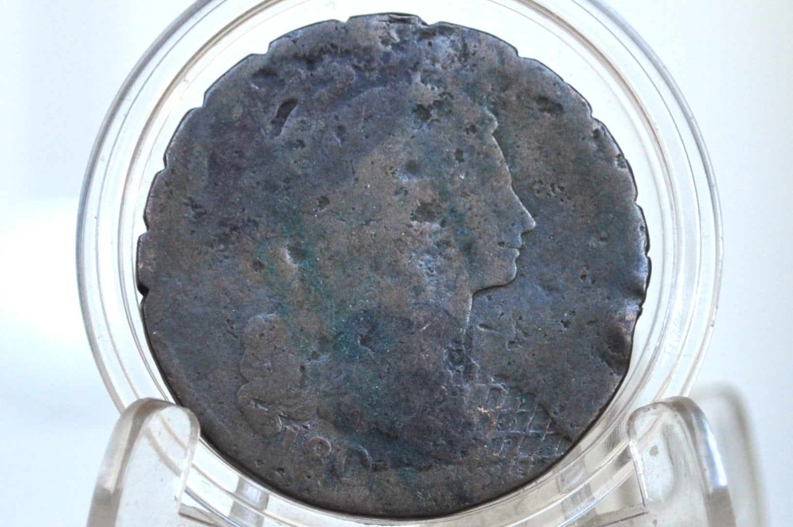 This listing is for the photographed 1802 Draped Bust Large Cent. Very worn and damaged which is why it is lower in price. Weak Date but readable. With Stems.
