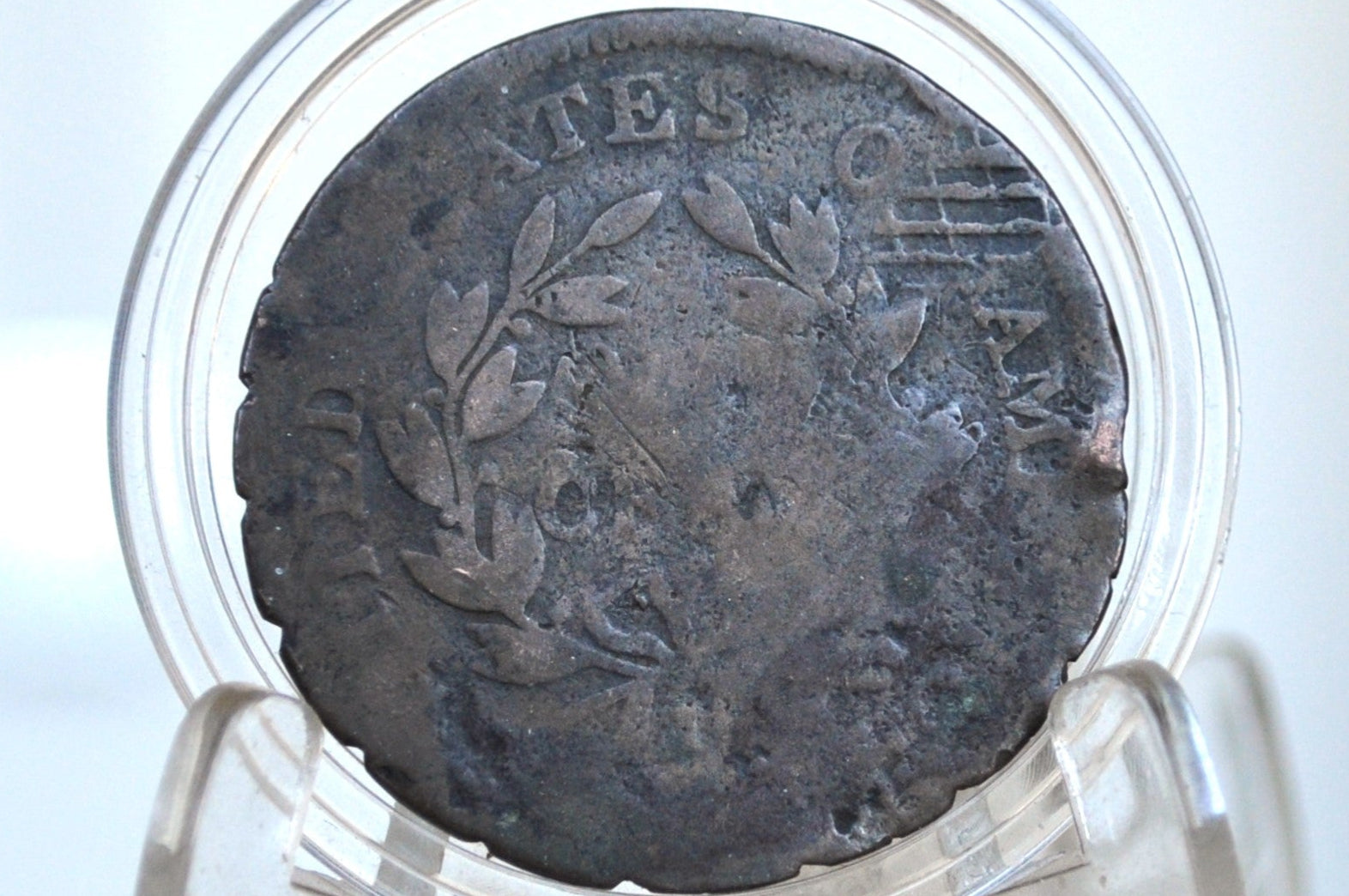 1802 Draped Bust Large Cent, With Stems - Damaged, Very Worn, Weak Date but readable - US Large Cent 1802 One Cent US - Lower Grade