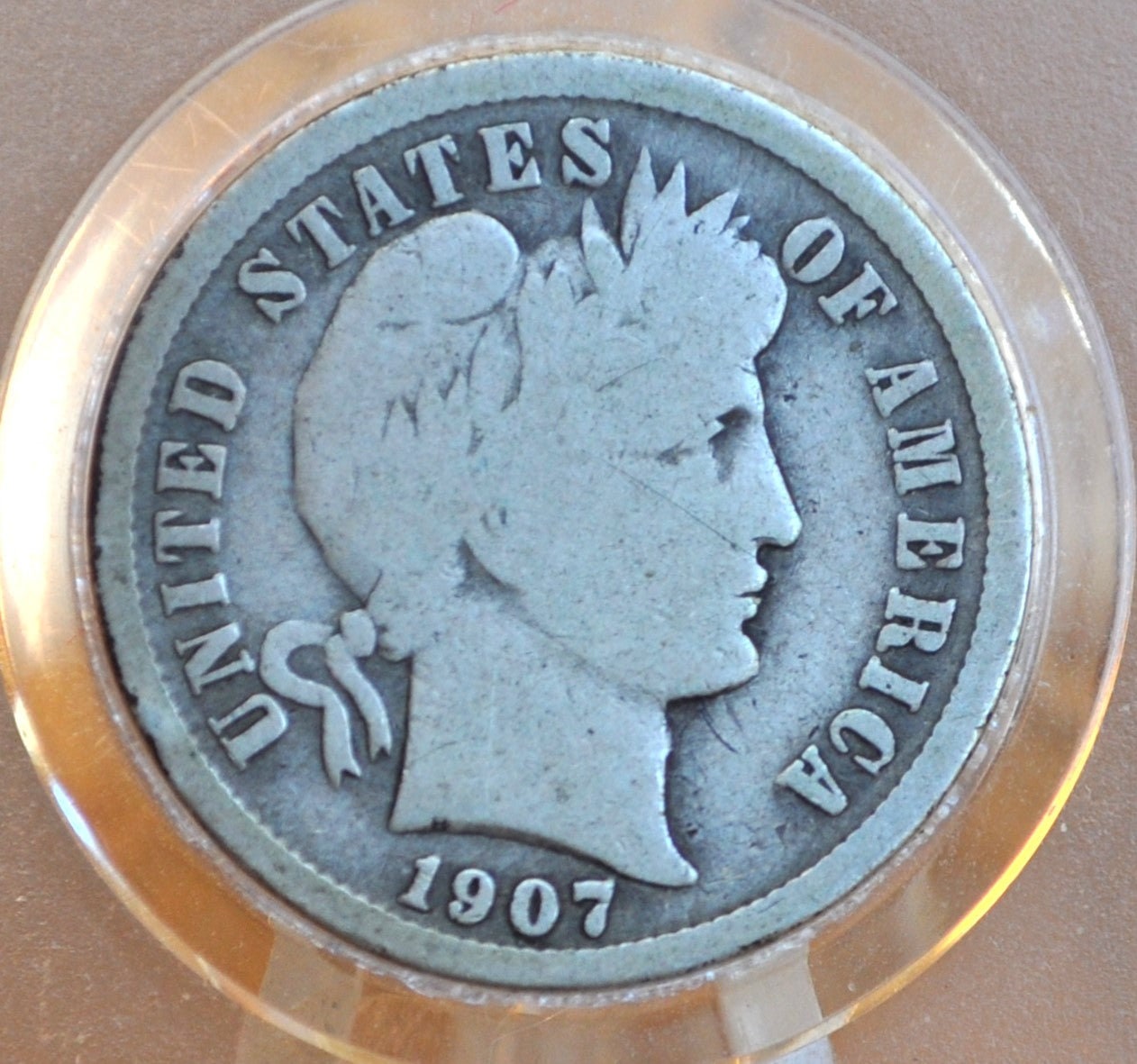 1907 Barber Silver Dime - Choose by Grade / Condition - Philadelphia Mint - 1907 Barber Dime - Silver Dimes