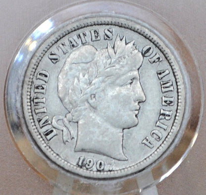 1904 Barber Silver Dime - AG (About Good) Grade / Condition - Philadelphia Mint - 1904 Barber Dime - Silver Dimes