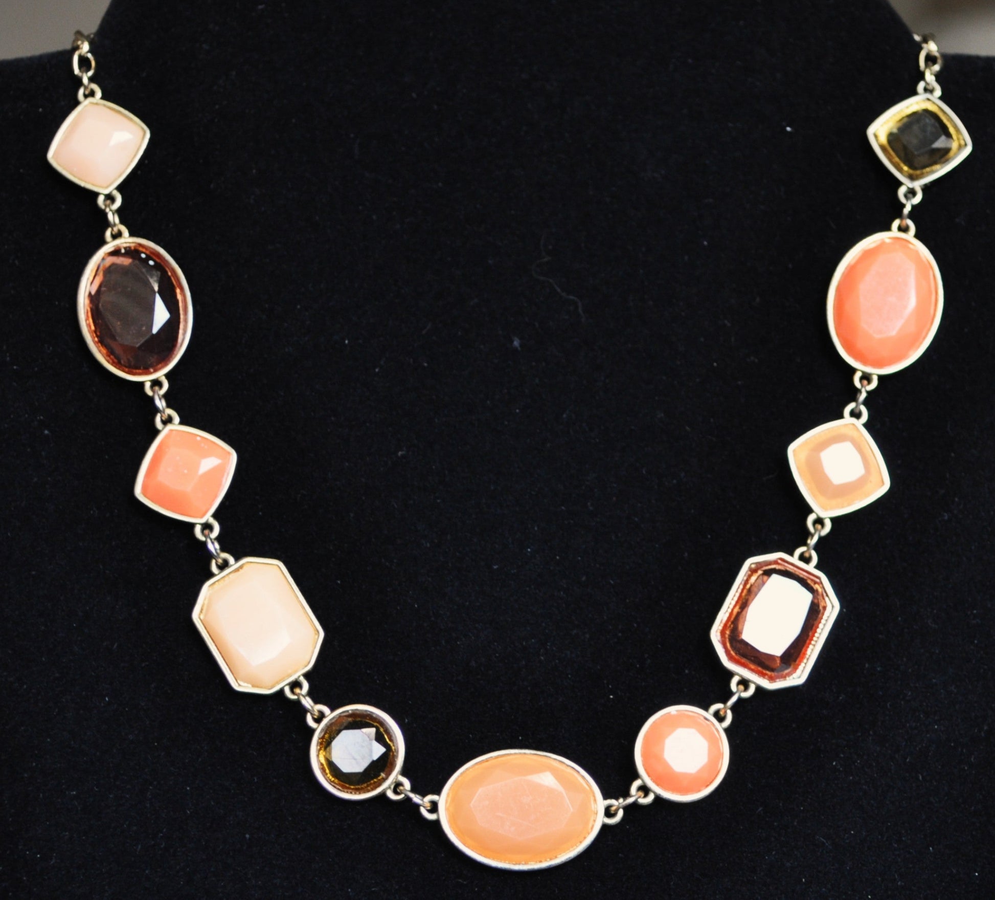 Beautiful Crown Trifari Goldtone Apricot Crush Necklace - 19 Inches - Signed Crown Trifari Charm - Peach Tone Gemstones Costume Necklace