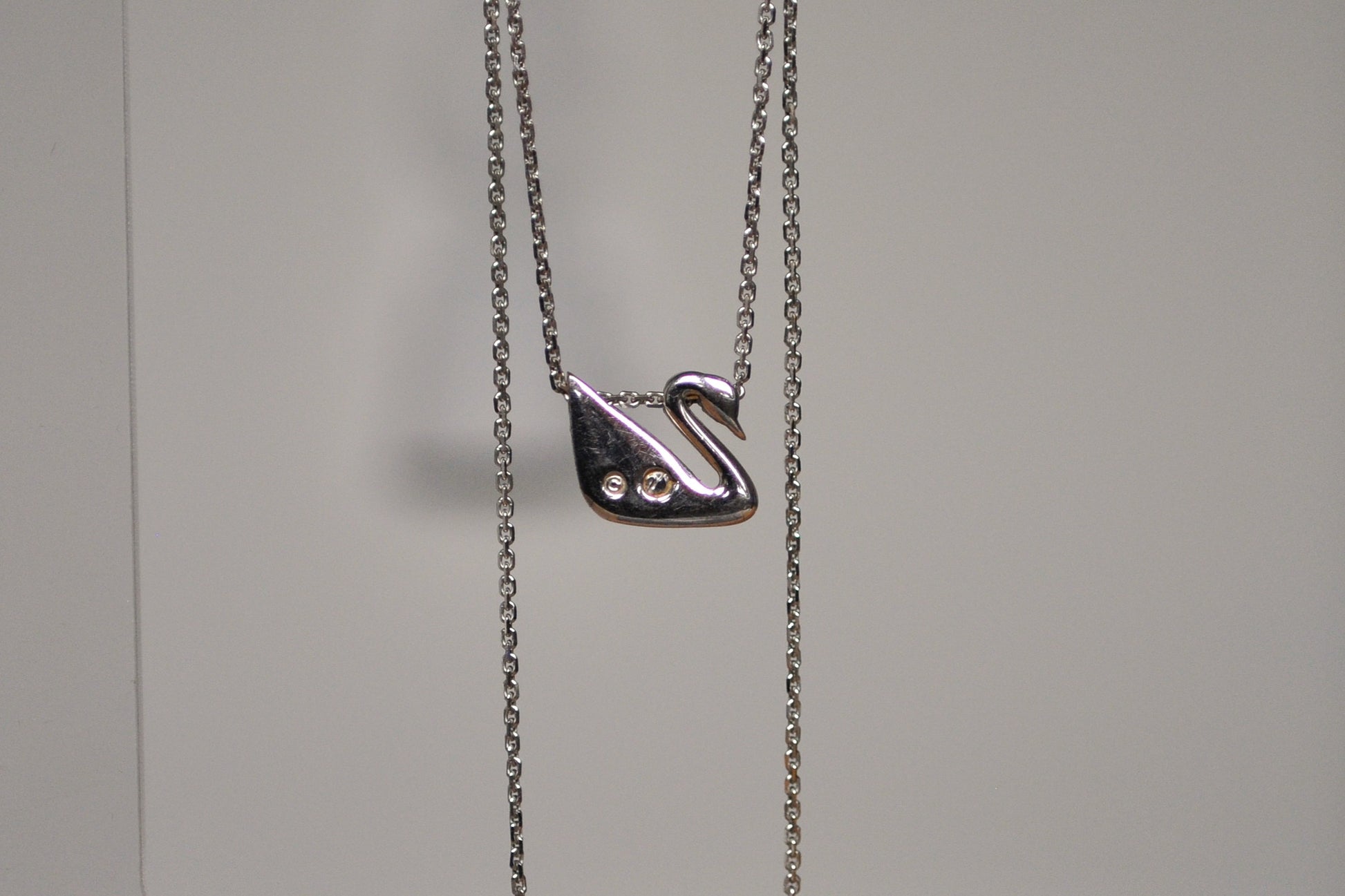 Stunning Swarovski Crystal Swan Necklace - 20 Inches - Silverplated Crystal Swan Necklace by Swarovski