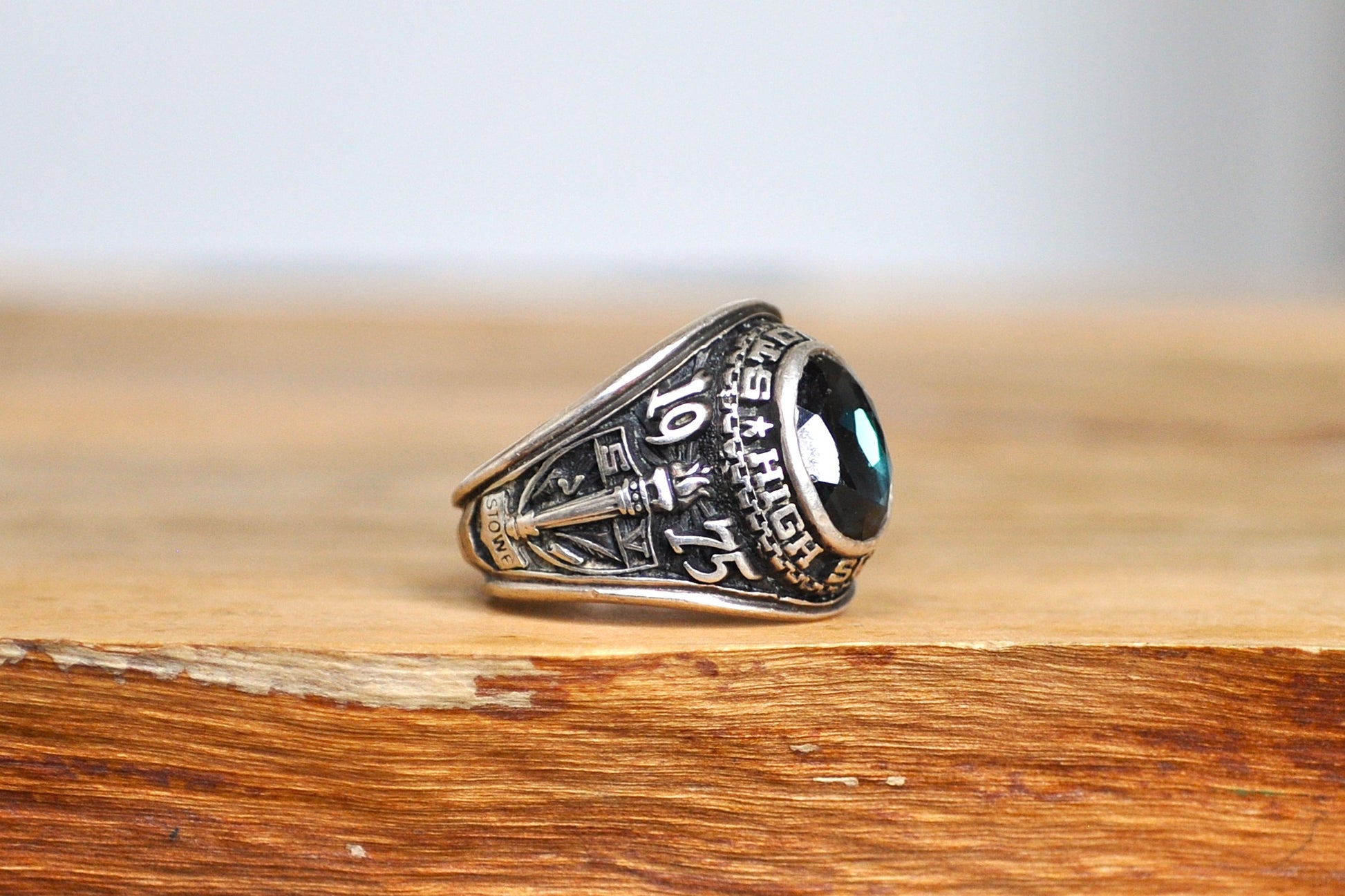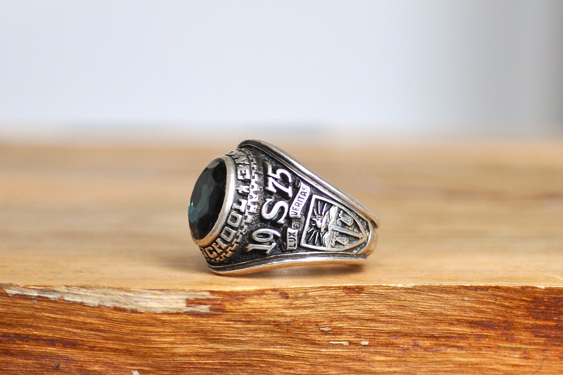 Vintage Sterling Silver 1975 Stowe High School Class Ring - Size 6.5. - Emerald Stone - Balfour Sterling Class Ring - Stowe, Vermont