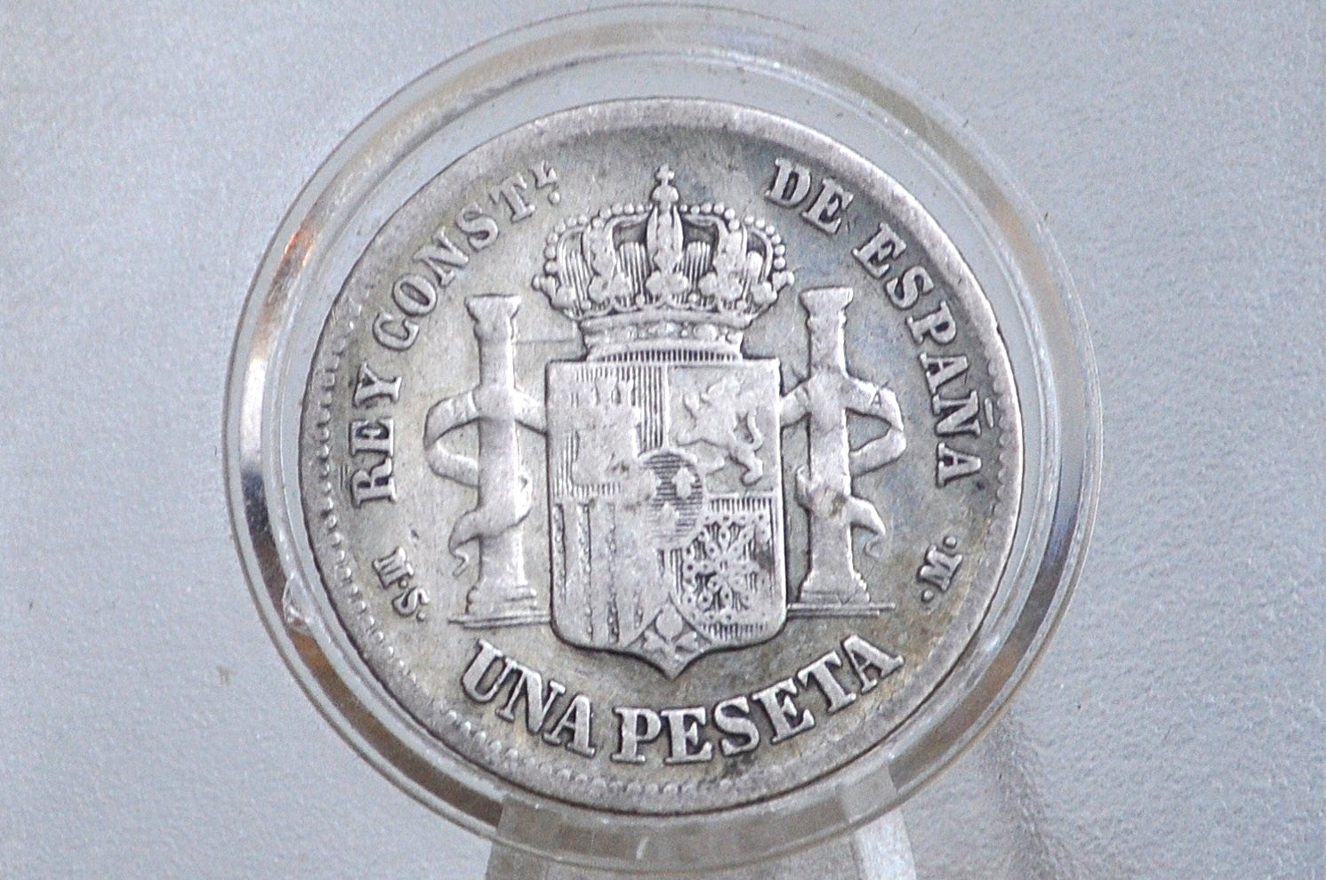 1883 Silver Spain 1 Peseta - F/VF Condition - Spanish Silver Una Peseta Coin 1883 - Alfonso XII -
